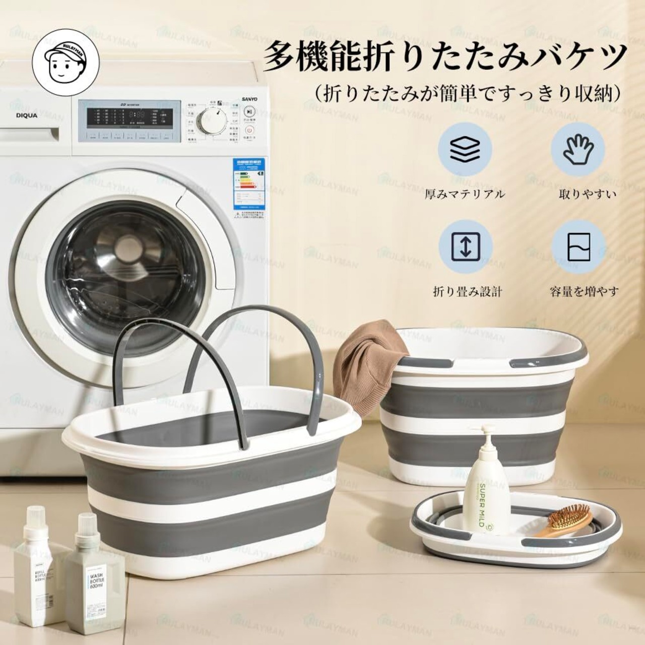 RULAYMAN 折りたたみ バケツ たらい バケット 洗い桶 16L/30L 大容量 取っ手付き ソフトタブ 洗濯 ペット用バスタブ コンパクト 衣類・靴つけ洗い ソフトバケツ タブワイド キッチン アウトドア 持ち運び 内外に適用 多機能 (16L)