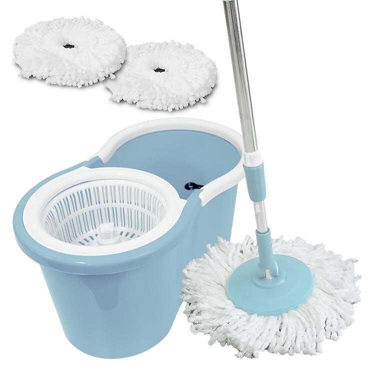 【特別価格】WEIMALL 回転モップ フロアモップ バケツ付き スペアモップ付き 洗浄 脱水 水拭き 乾拭き フローリング (ライトブルー)