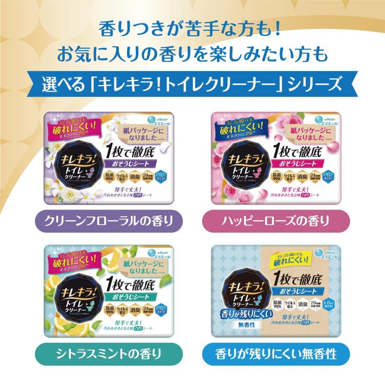 【数量限定】【 限定】エリエール キレキラ ! トイレクリーナー つめかえ用 クリーンフローラルの香り 60枚(20枚×3個) 1枚で徹底おそうじシート 【まとめ買い】