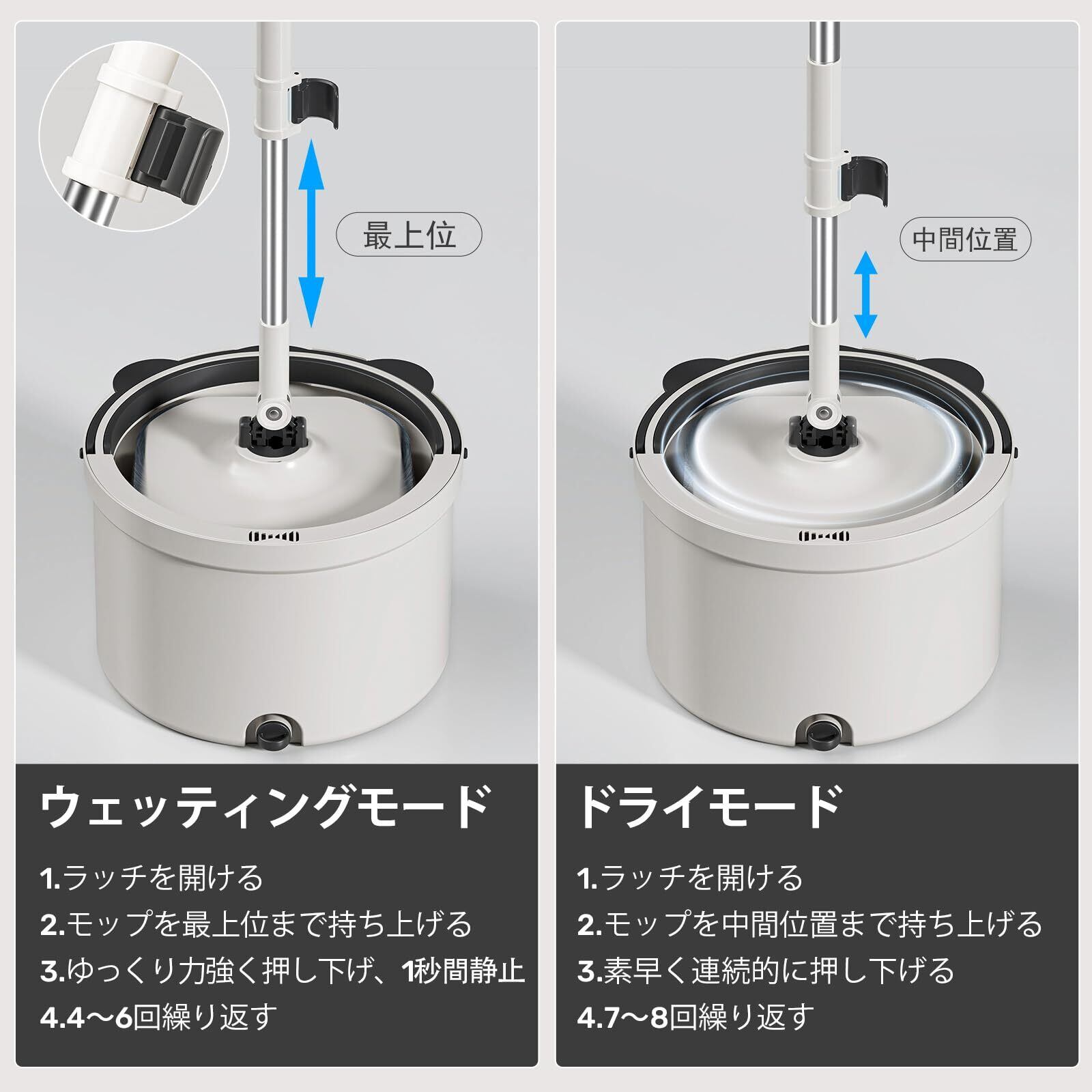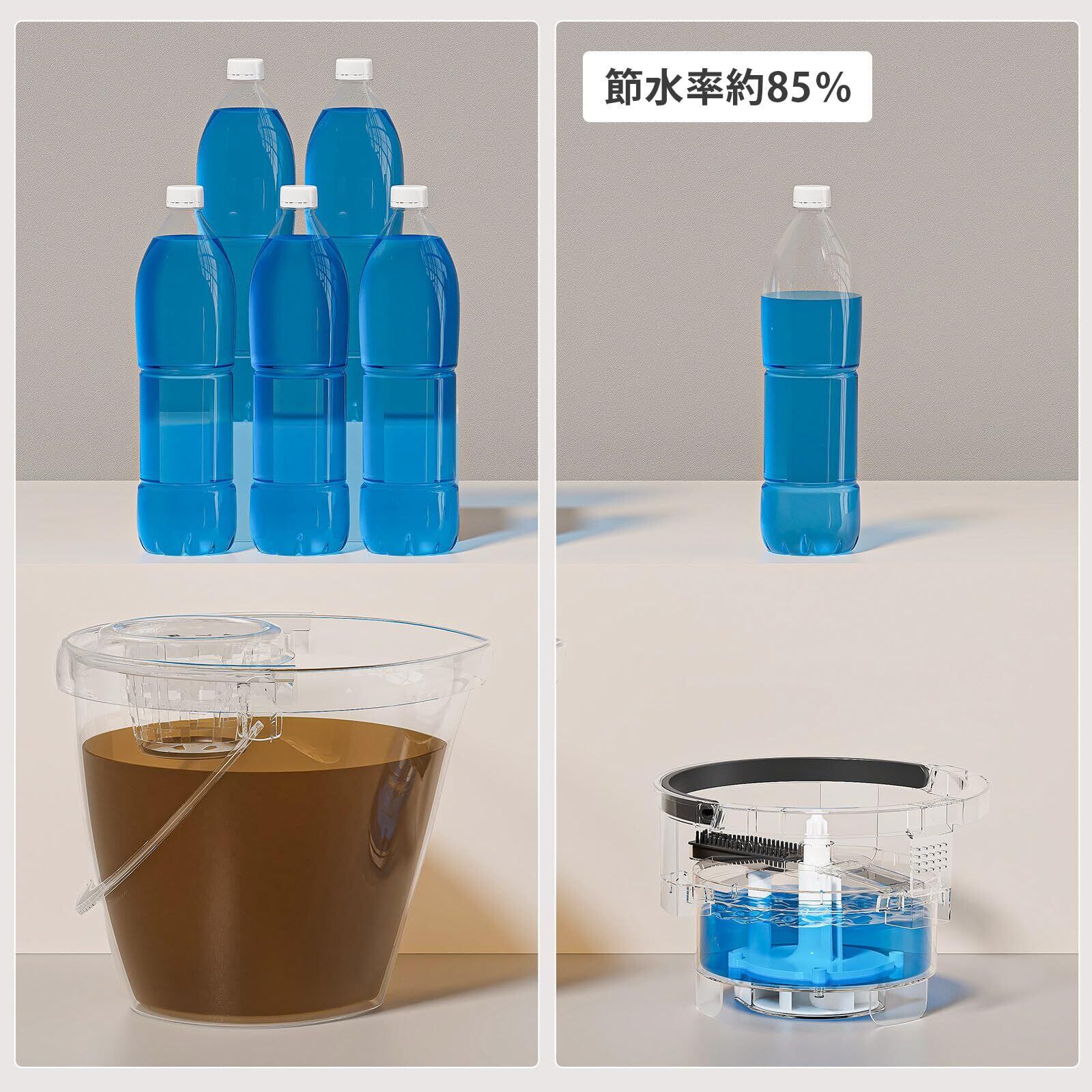 【汚水分離&大容量設計】 デュアルバケットで清潔な水と汚水を完全分離!1.9L大容量清水タンクにより、2LDKの広さを3回連続清掃可能。手を汚さずモップ洗浄・水切りが完了