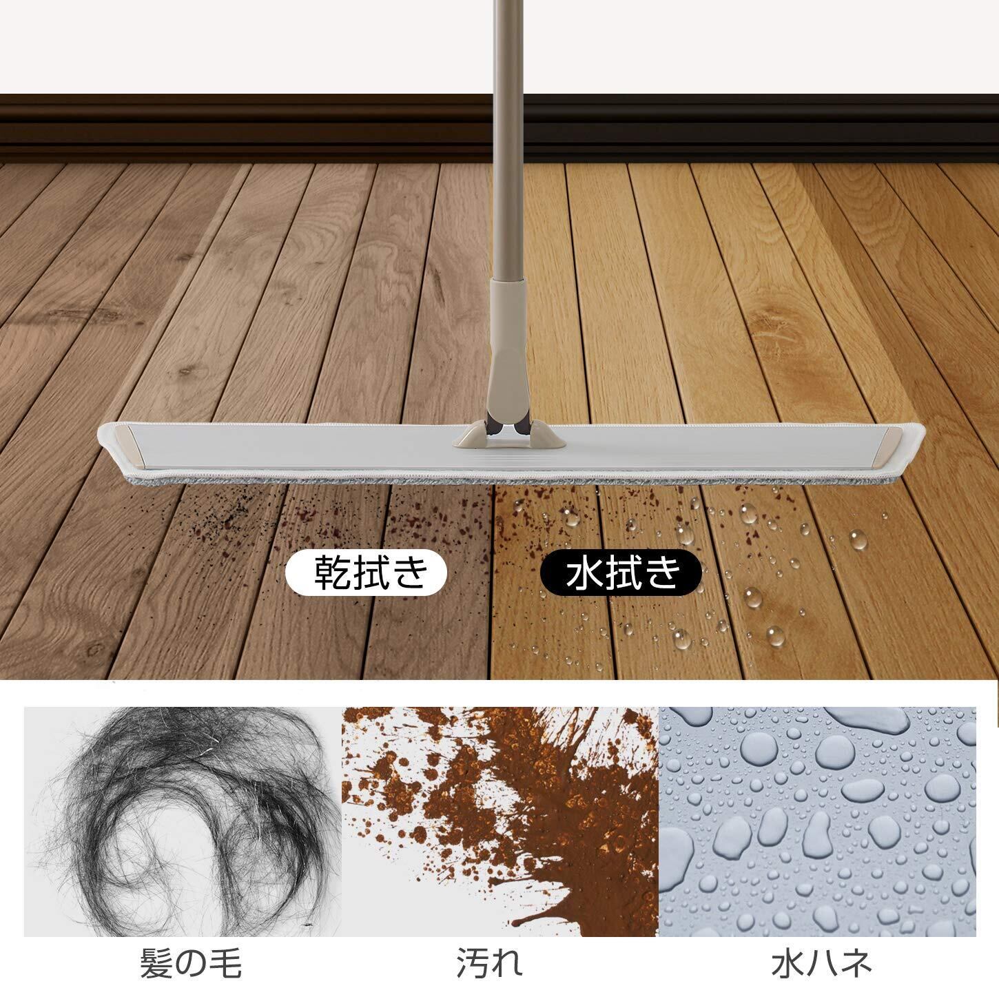 【いいデザイン】:ハンドルの長さ約82.5~132cm範囲で自由に長さ調節することができ、腰を大変に曲げる必要なくお気軽に使用できます。60cmのアルミ板が幅広くて、広い部屋でも余裕あり掃除が実現できて、床掃除の時間も節約できます。