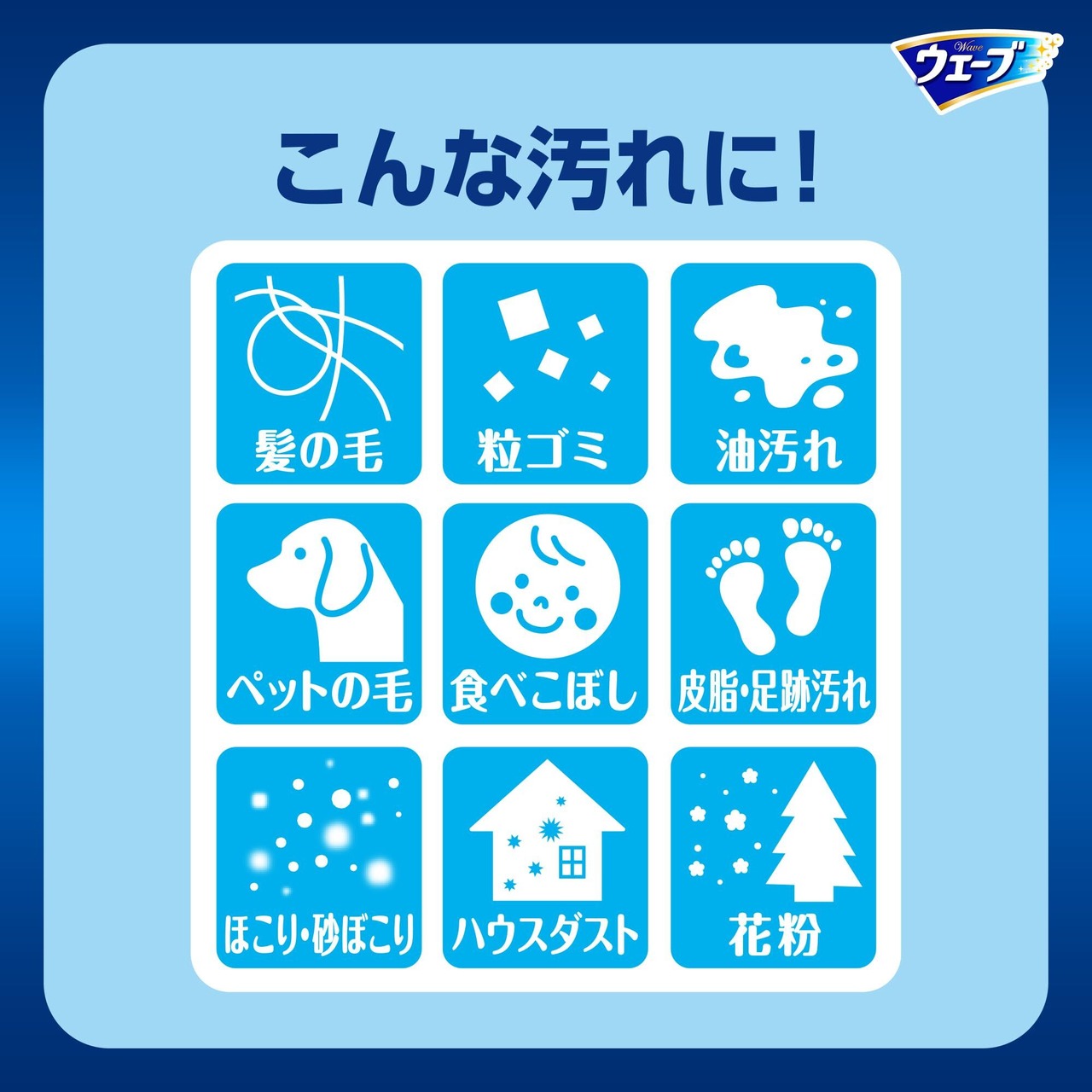 ●絡めるロングファイバー・ゴミ取りポケット付きのたっぷり水分シートで、髪の毛・粒ゴミ・ベタベタ汚れをキャッチ!絡め取りとベタベタ拭きを1度にできて床掃除が1枚完結!
