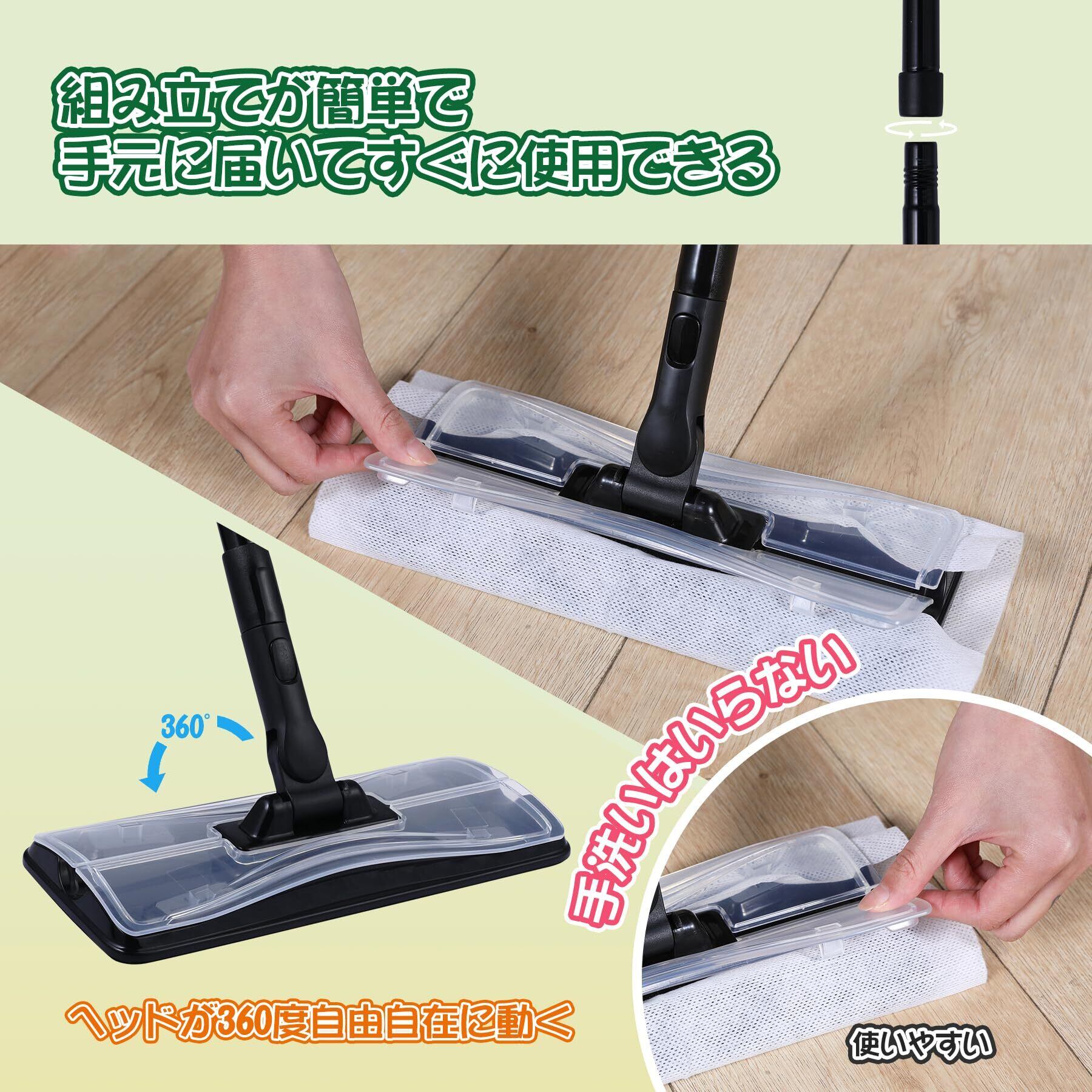 【使いやすい雑巾ワイパー】:フルクリップ式モップなので、タオルや雑巾等がずれません。フロアワイパー 本体のヘッドが360度回転できますので、使いやすいです。フロアワイパーのシート部分は、吸水性に優れ、髪の毛・ホコリが取り込みやすいです。