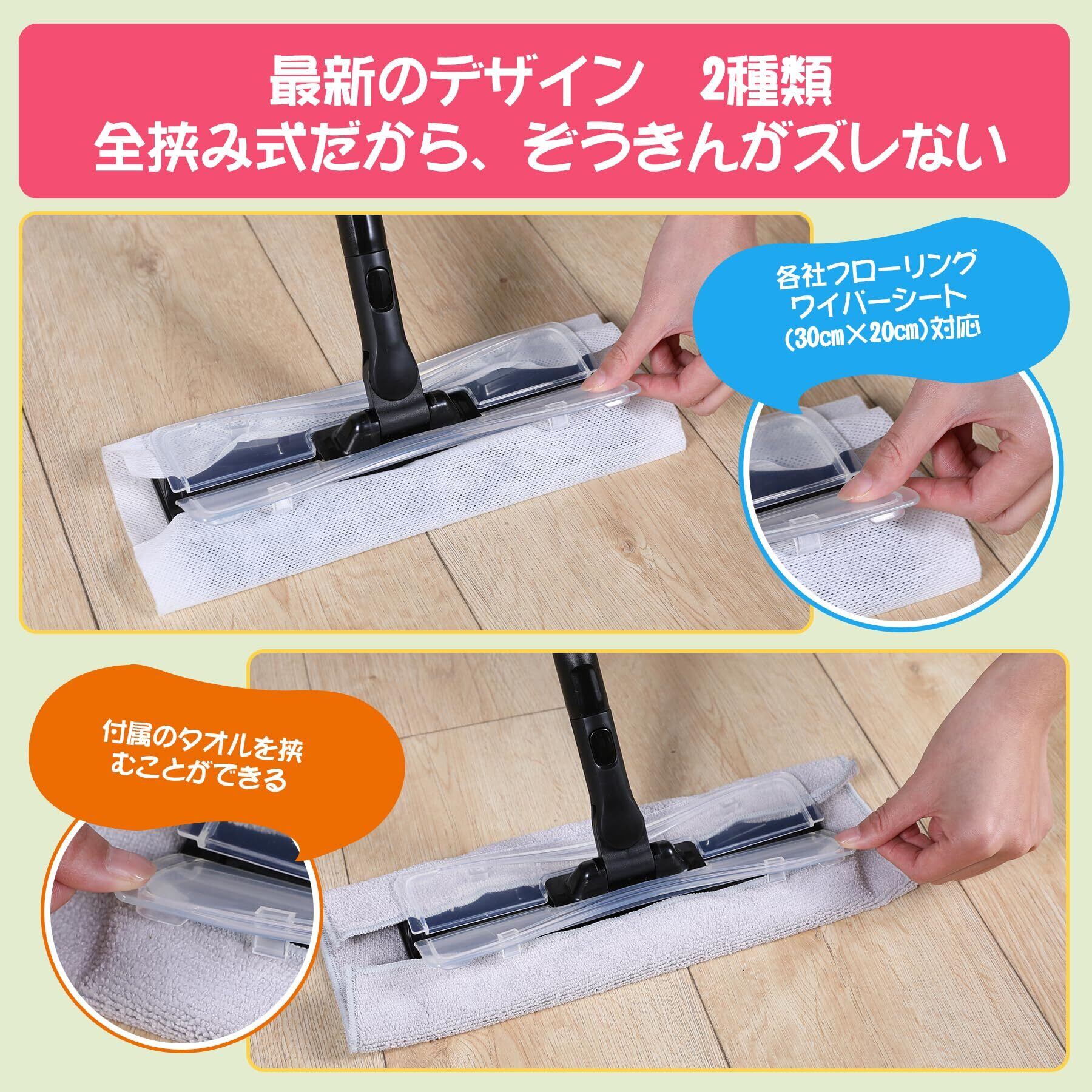 【シート&雑巾クロス対応簡単】:フロアワイパー本体には、簡単にぞうきんが取り付けられます。取り付けるシートは各社共通、ウエットシート、ドライシート、雑巾ワイパーのどちらも対応できます。乾湿両用フローリングワイパーとして、とても便利です。