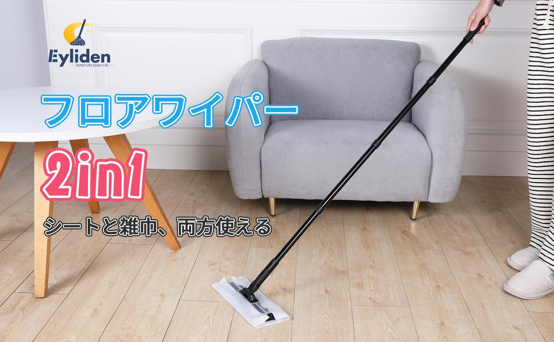 【数量限定】Eyliden フロアワイパー 本体 フローリングワイパー 雑巾ワイパー ぞうきんモップ フロアモップ フロア用掃除道具 掃除 2in1 タオル2枚 取替えシート10枚入 38cm~120cm 長さ調節可 乾湿両用 床 ワイパー ベランダ 玄関 床 窓 車 壁 フロア 掃除道具