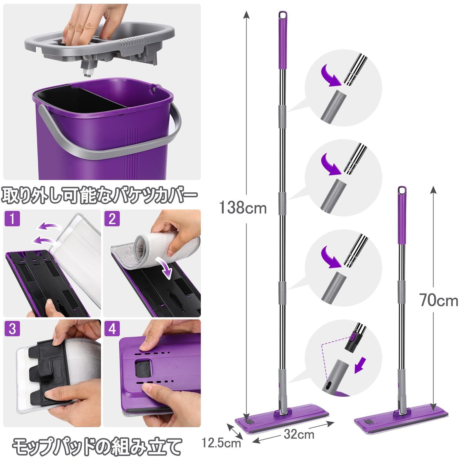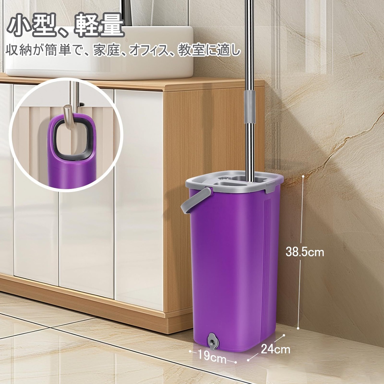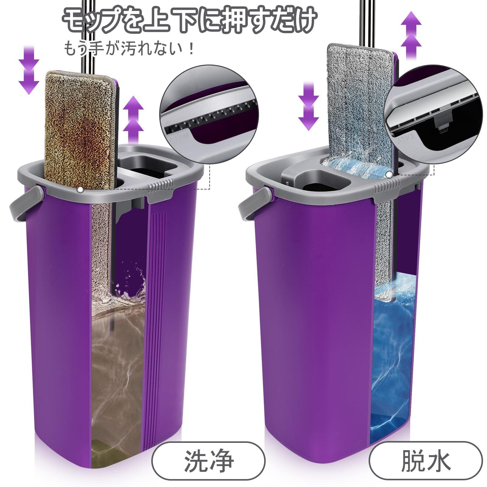 多機能バケツ:二槽式バケツは汚水を分離できます。毎回フロアモップを新鮮な水でリフレッシュします。モップはた脱水槽に数回押し上げるとすぐに乾きになります。バケツの底部には排水口があり、使いやすい。