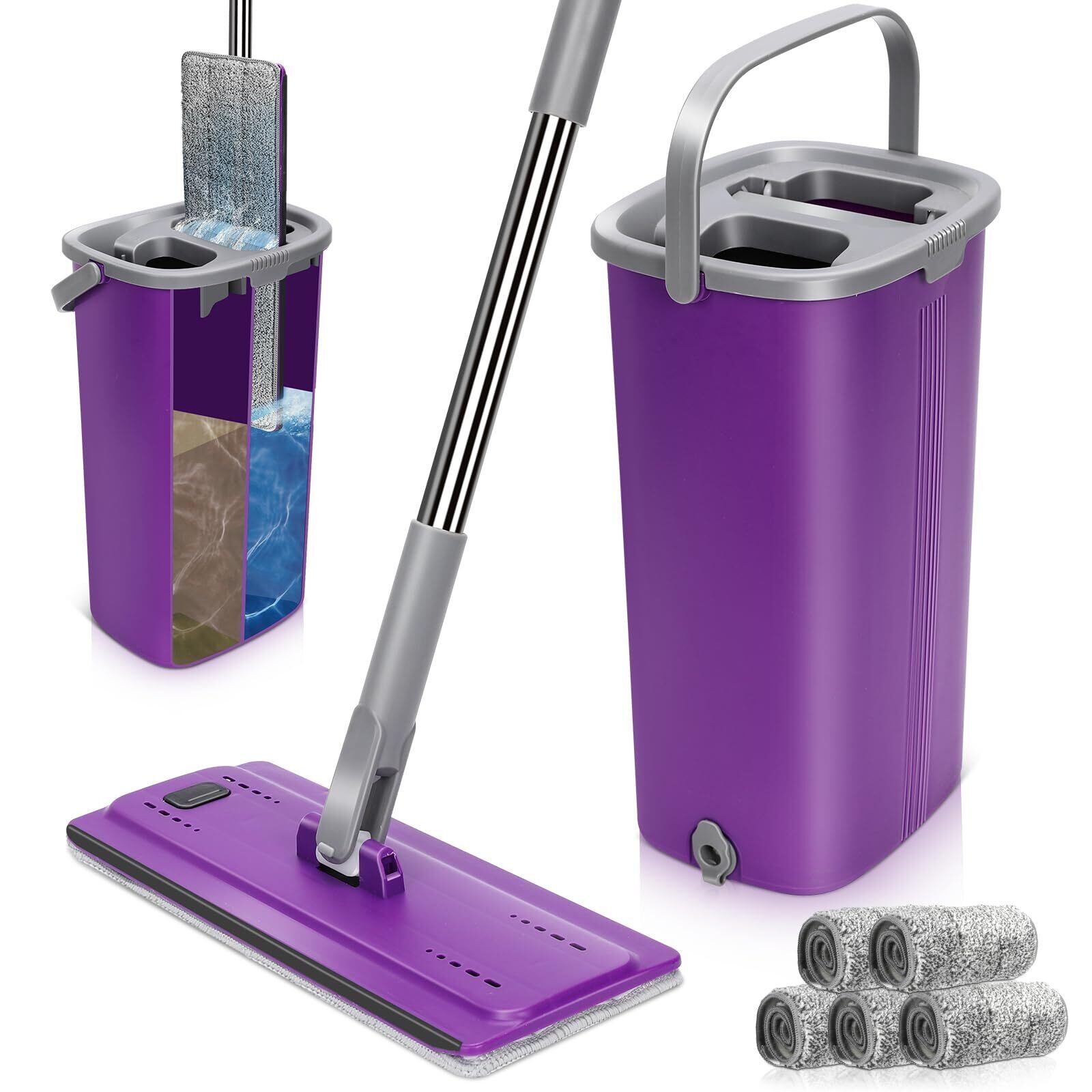 Masthome フロアモップ 洗浄脱水バケツ付き 360度回転 床拭きモップ 水拭き乾拭き お手軽床掃除 無手洗いモップセット 5枚マイクロファイバーモップパッド付き 138cm調整可能ハンドル 軽量で使いやすい