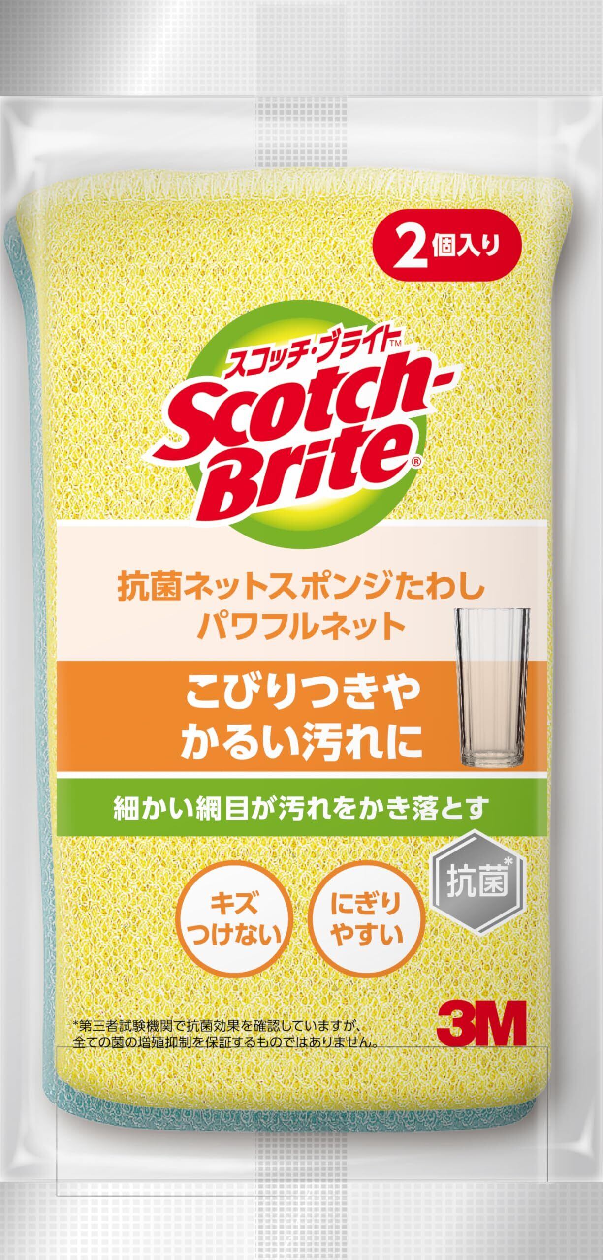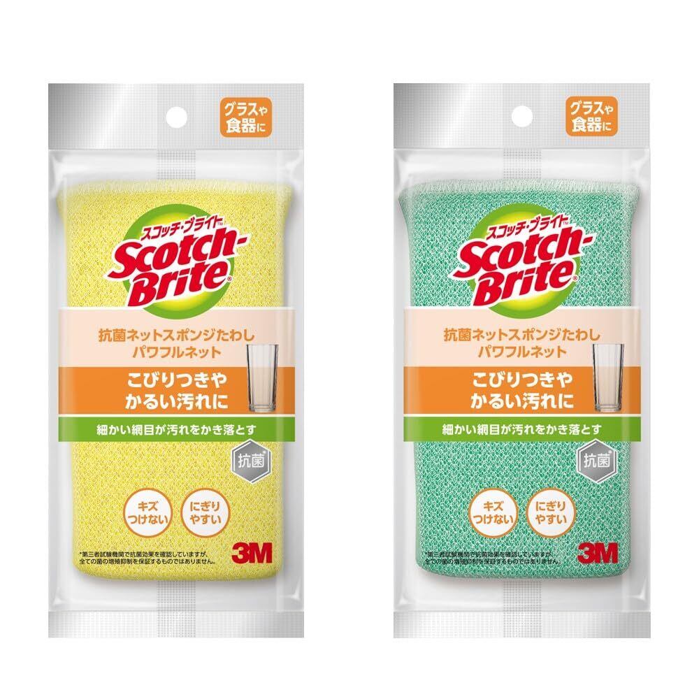 3M スポンジ 食器洗い たわし キッチン キズつけない 抗菌 パワフルネット 2個 スコッチブライト NT-01K 2PM