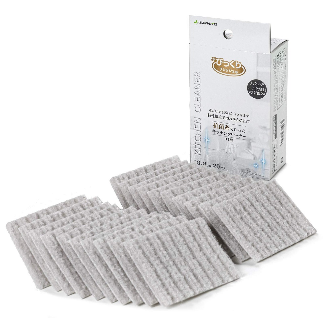 Sankoサンコー キッチンスポンジ 食器 コップ シンク 抗菌加工 クリーナー 日本製 びっくりフレッシュ 20枚入 6×8cm グレー BA-55