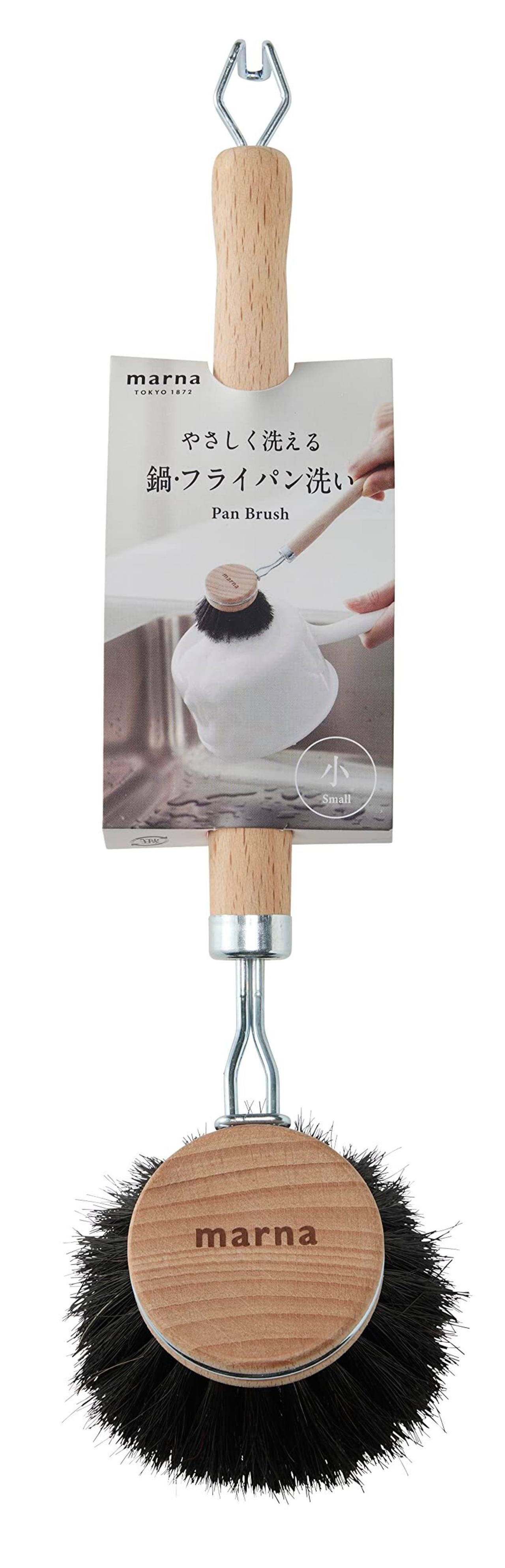 マーナ (marna) 鍋・フライパン洗いブラシ (馬毛/ソフト/小) 台所 食器洗い (柄付き/木製) キッチン ブラシ K813