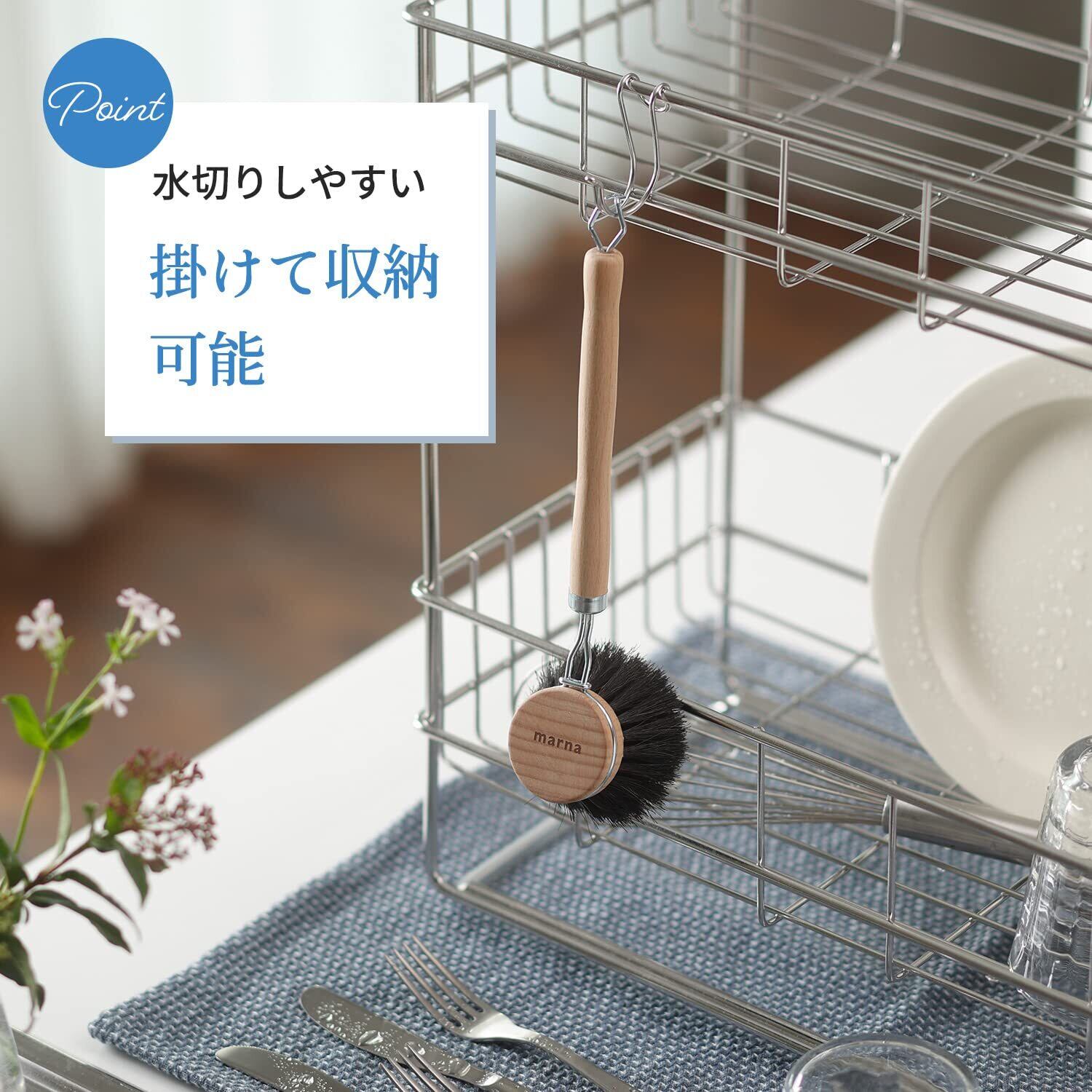 【限定セール】マーナ (marna) 鍋・フライパン洗いブラシ (馬毛/ソフト/小) 台所 食器洗い (柄付き/木製) キッチン ブラシ K813