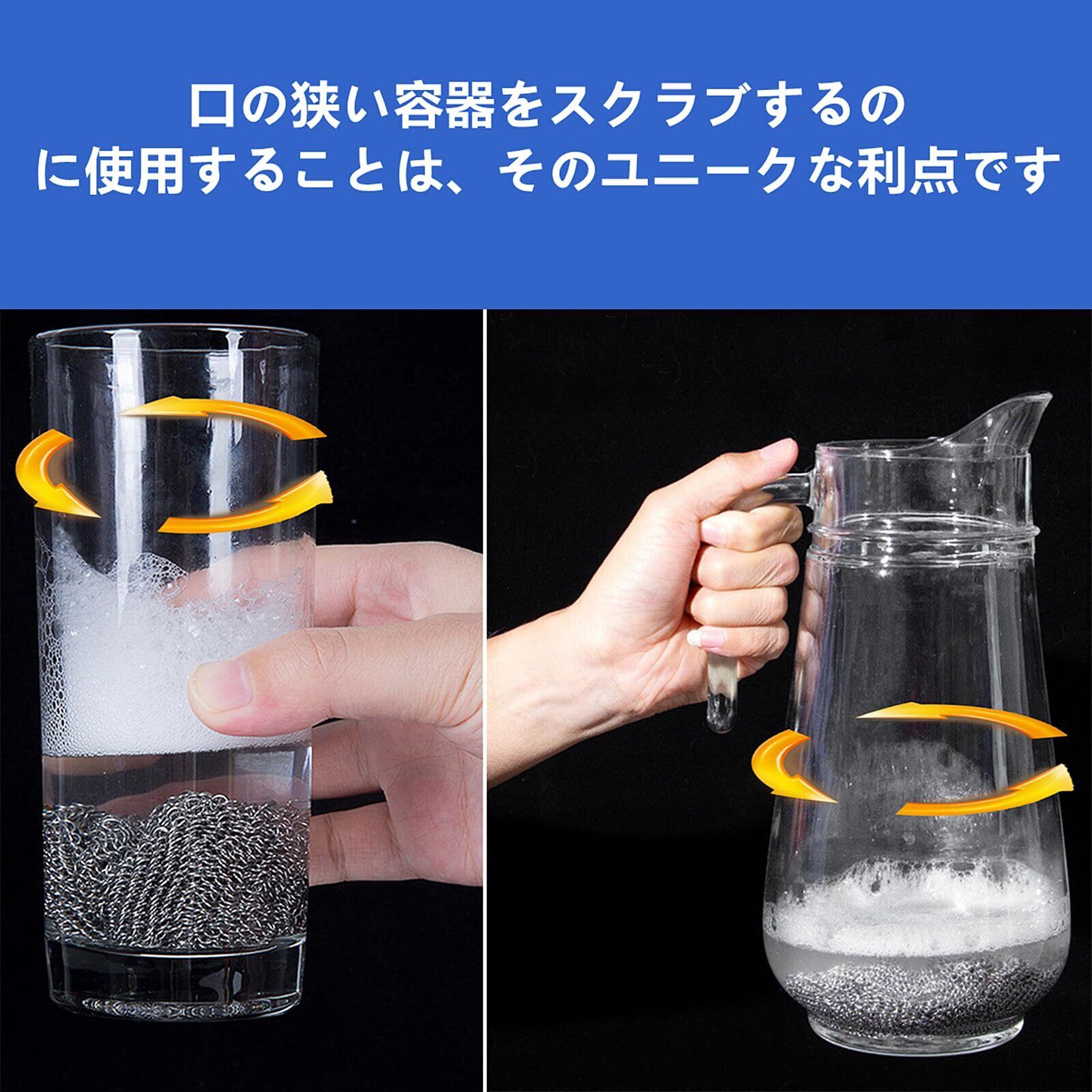 【幅広い用途】本製品のチェーンは繊細で滑らかなので、釉薬の鍋を傷つける心配はありません。 比較的軽く、キャンプや旅行にも使えます。 オーブン、グリル、ワッフルメーカー、ジューサー、フライパン、こびりつかないフライパン、パイ皿、ガラス製品、カップ、プレートなどの洗浄に適しているだけでなく、口の狭い容器の洗浄にも独自の利点があります。