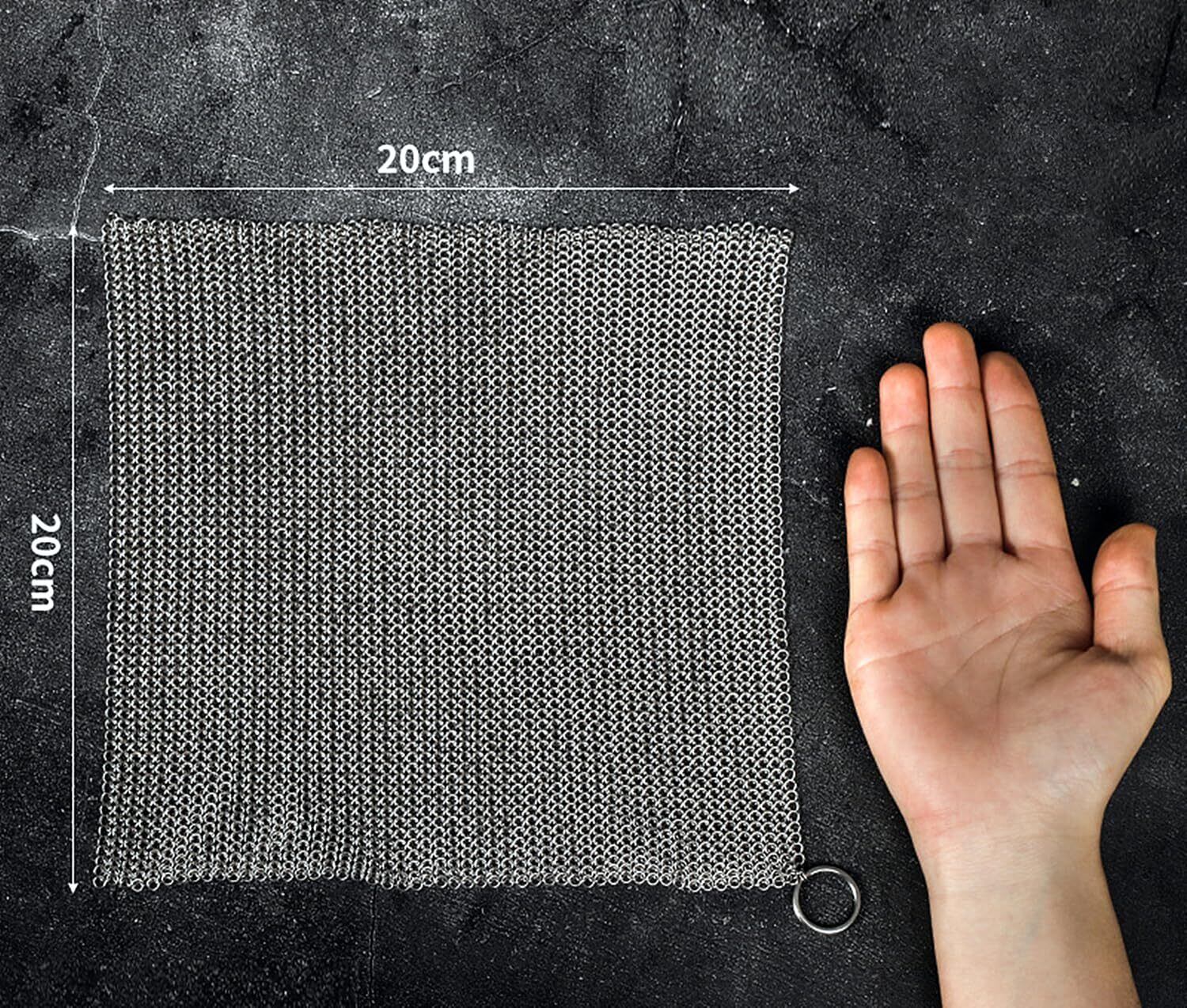 【当社の利点】当社のチェーンメール スクラバーは 316L ステンレス鋼でできており、小さなリングとメッシュが付いています。 これらは市場に出回っている第 2 世代のスクラバーであり、パンの表面をより完全にカバーするためのリング穴が小さくなっています。 さまざまなサイズから選択でき、面積が大きいほど手触りが良くなります。