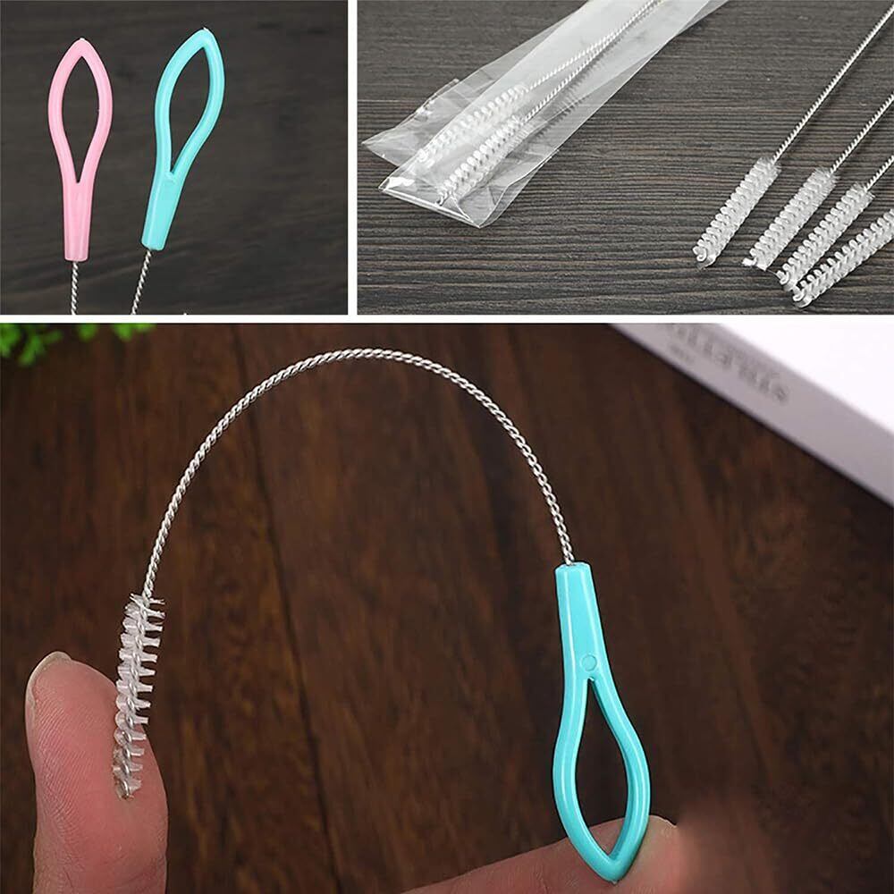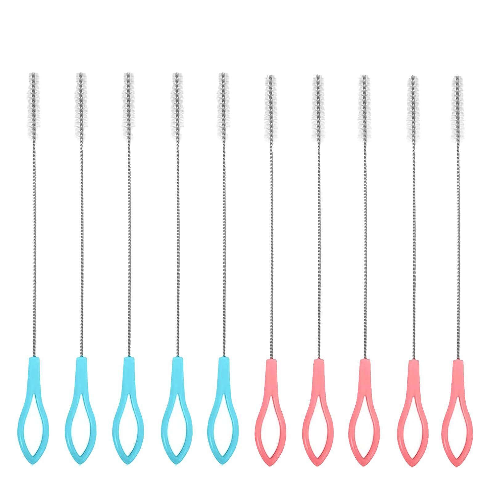 DFsucces ストローブラシ 洗浄ブラシ ステンレス製 チューブブラシ ロングタイプ 極細ナイロン 哺乳瓶ブラシ 隙間ブラシ 自由に曲がる 再利用可能 (10本セット)