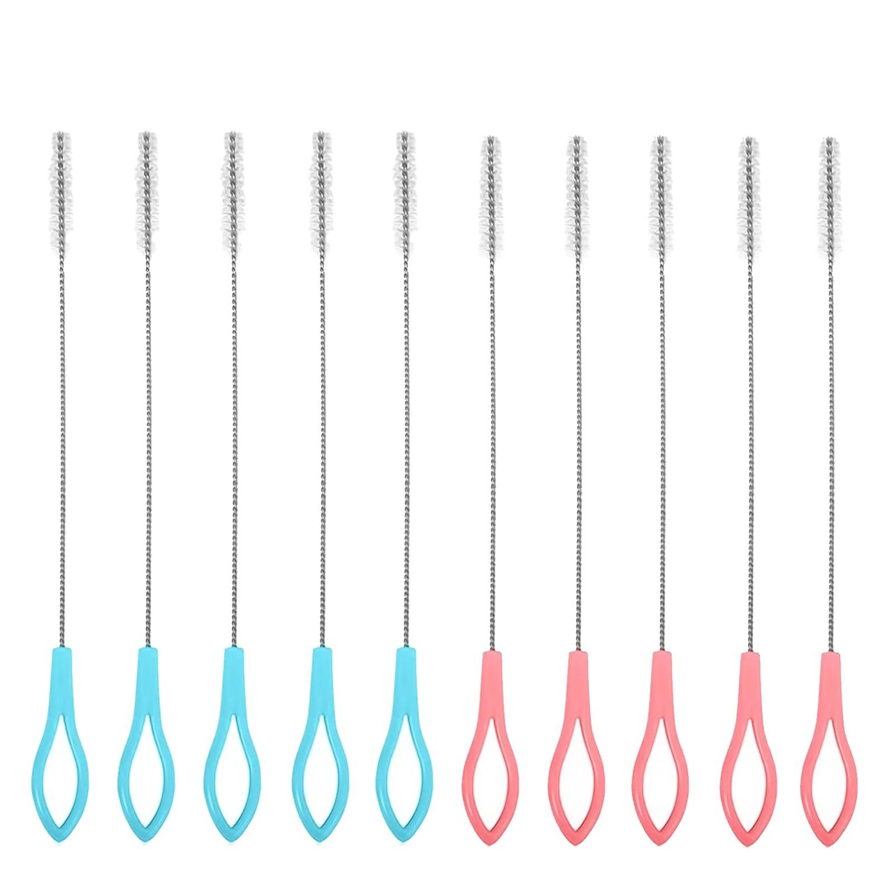 【特別価格】DFsucces ストローブラシ 洗浄ブラシ ステンレス製 チューブブラシ ロングタイプ 極細ナイロン 哺乳瓶ブラシ 隙間ブラシ 自由に曲がる 再利用可能 (10本セット)
