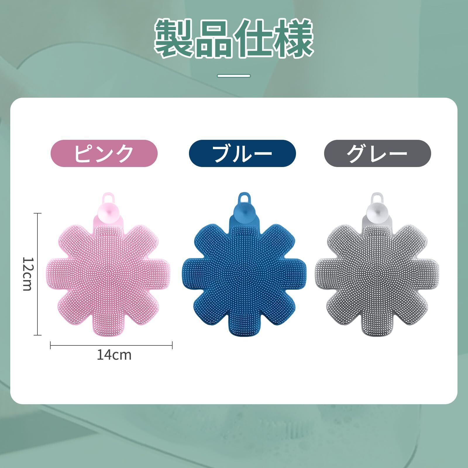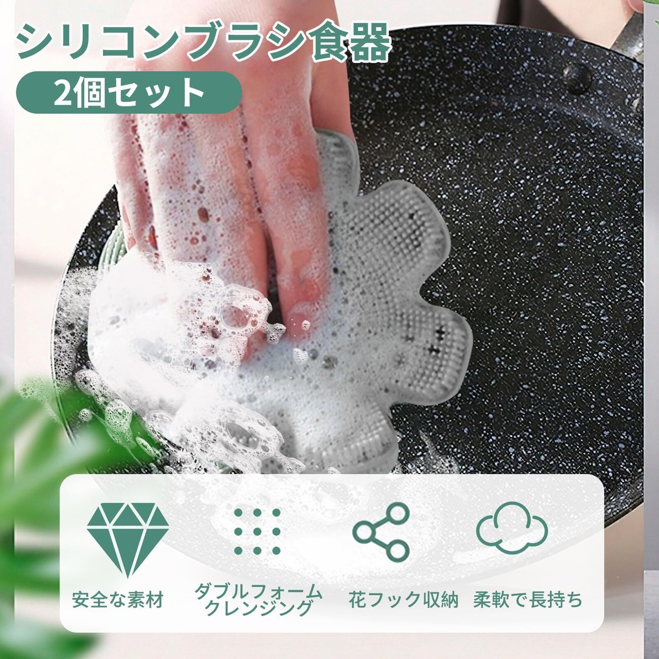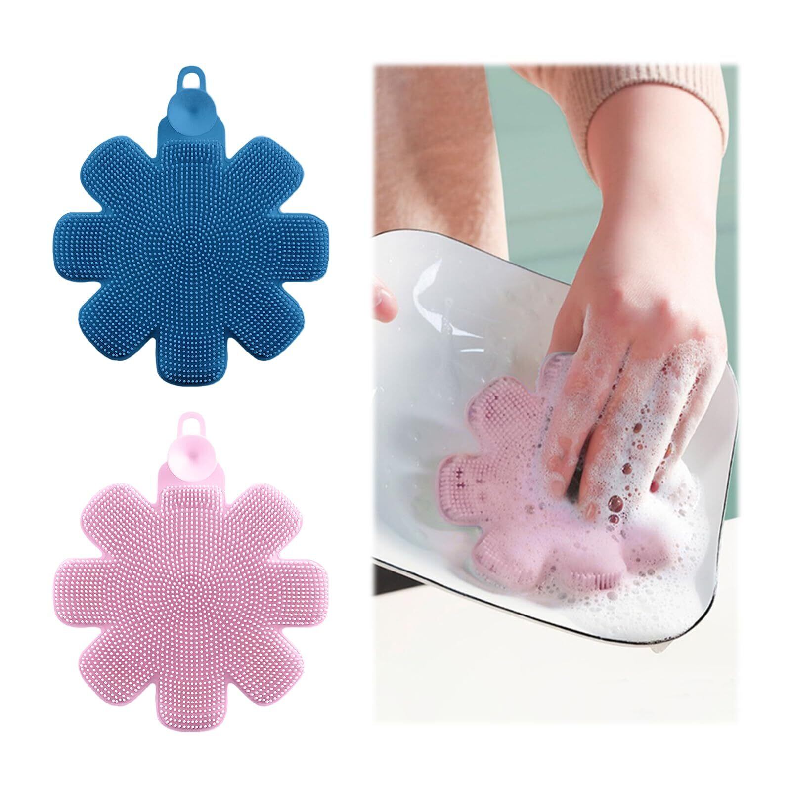 フリランス-ショプ シリコンブラシ 2個セット キッチンスポンジ 食器 キッチン 洗浄ブラシ 柔軟 耐久 抗菌防カビブラシ 抗菌 食器用スポンジ 防臭(ブルー+ピンク)