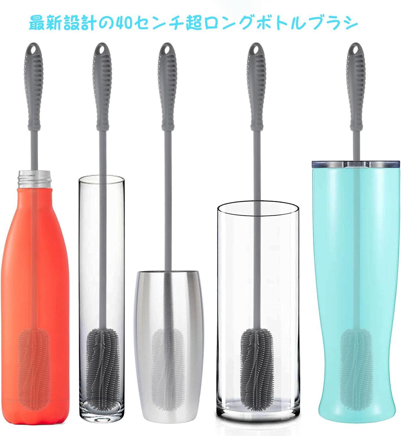 ddLUCK 超ロングハンドル シリコン製瓶ブラシ ボトルブラシ シリコン ブラシ BPAなし40㎝水筒ブラシ ハイドロフラスコ スポーツボトル 花瓶、魔法瓶 、ガラス製品の洗浄する (1個-グ) (グレー)