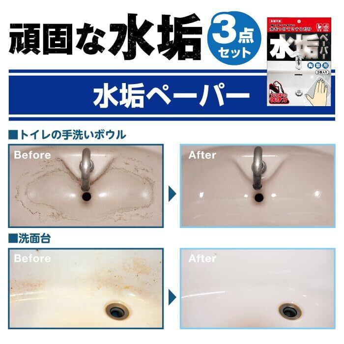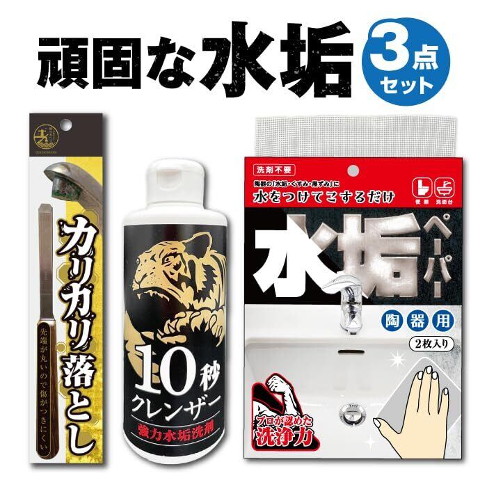【特別価格】【錫村商店公式】まずはコレ!水垢3点セット|鏡・蛇口・トイレ・洗面台の汚れに対応(水垢・ウロコ・尿石)|クレンザー・ヘラ・シートのプロ仕様セット|10秒クレンザー|カリカリ落とし|水垢ペーパー