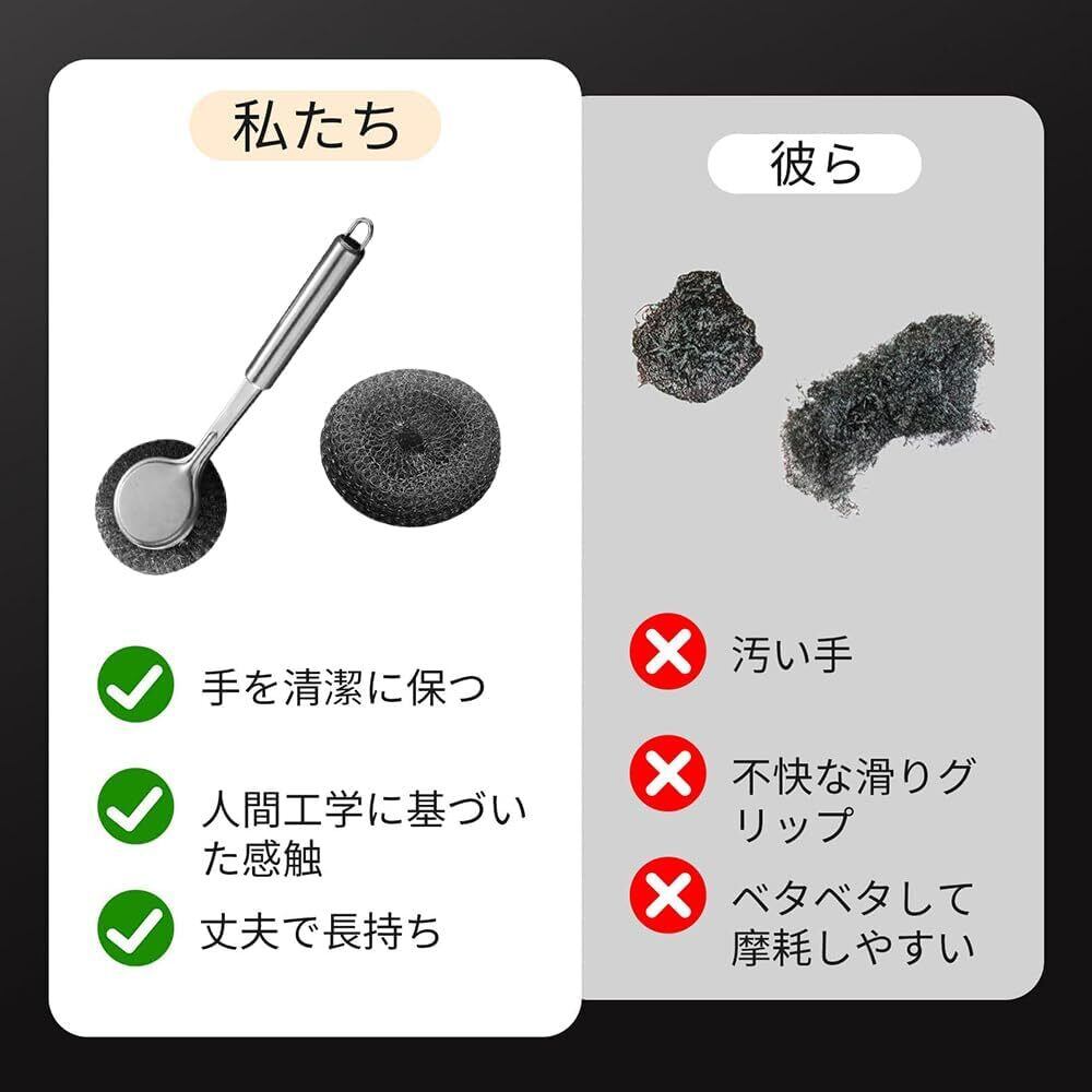 6個セット 金たわし ステンレスたわし 持ち手 本体+替え5個 长柄 かなだわし洗いブラシ 台所用 家庭用 キッチン掃除用