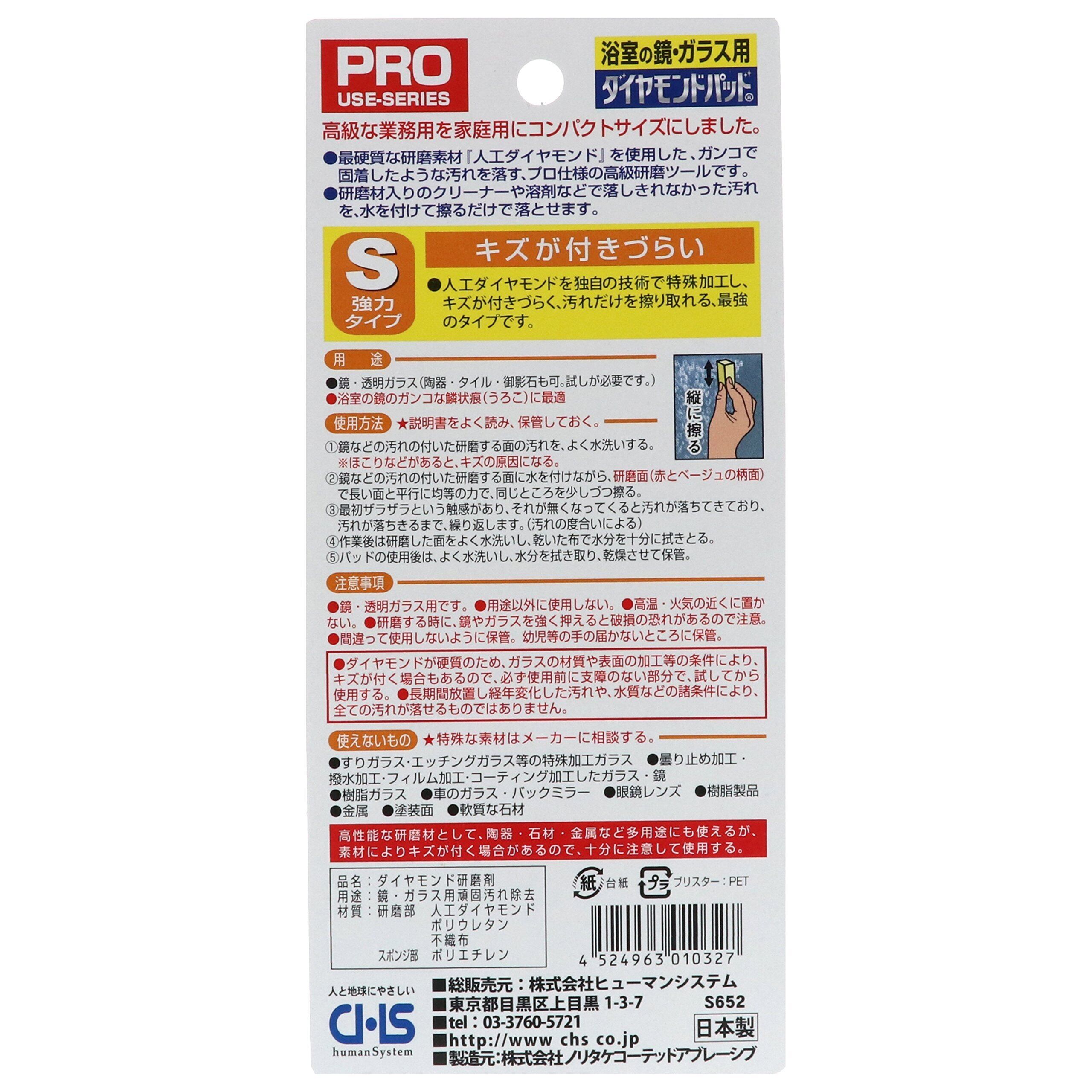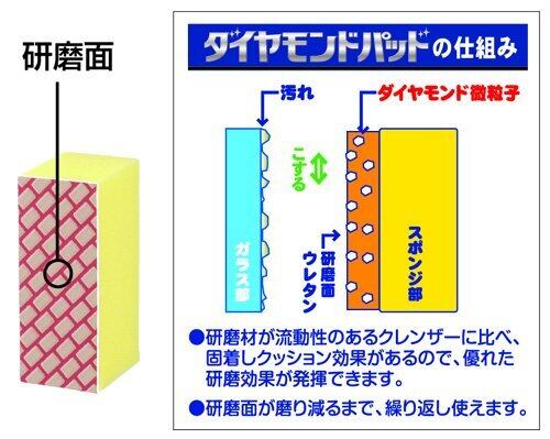 「鏡・ガラス用 ダイヤモンドパッド S」は、水をつけてこするだけで、あきらめていた汚れがスッキリ落ちるガラス用クリーナーです。