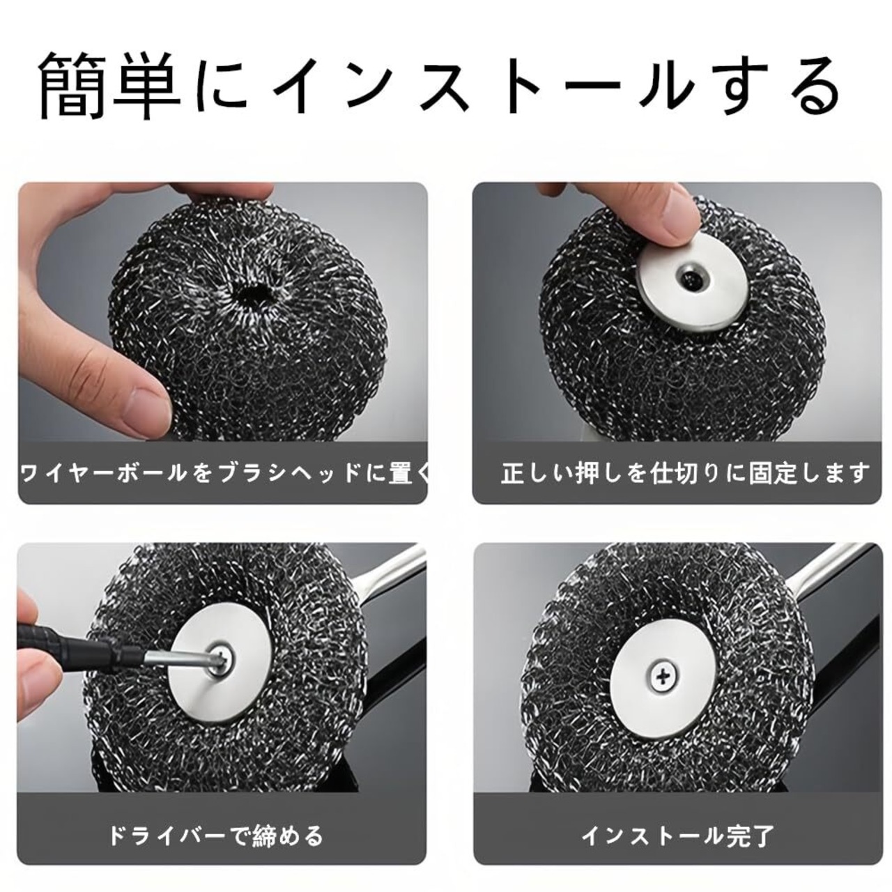 【交換が簡単】:4つの交換用タワシが付属し、頻繁に購入する必要がなく、交換と長期使用に便利です。 取り付けが簡単で、背面のネジを外すだけで新しいイワシに交換できます。