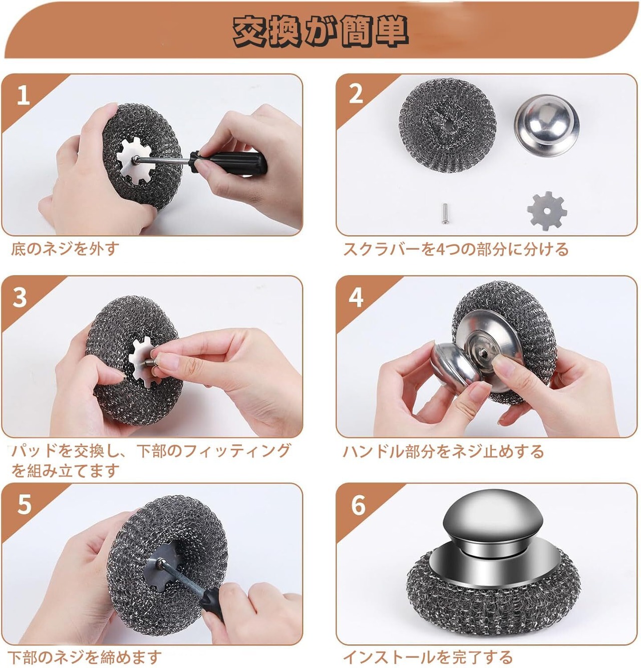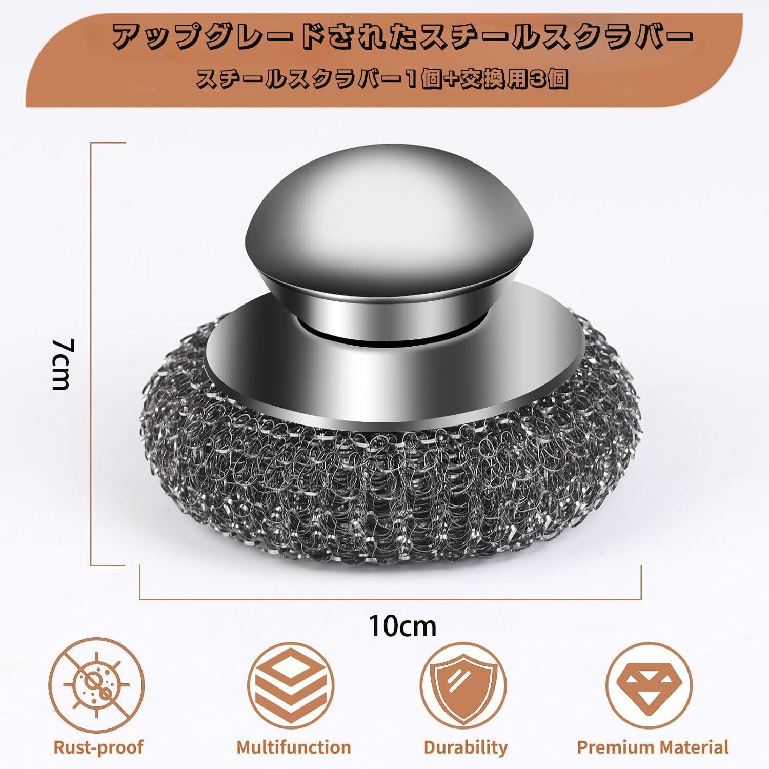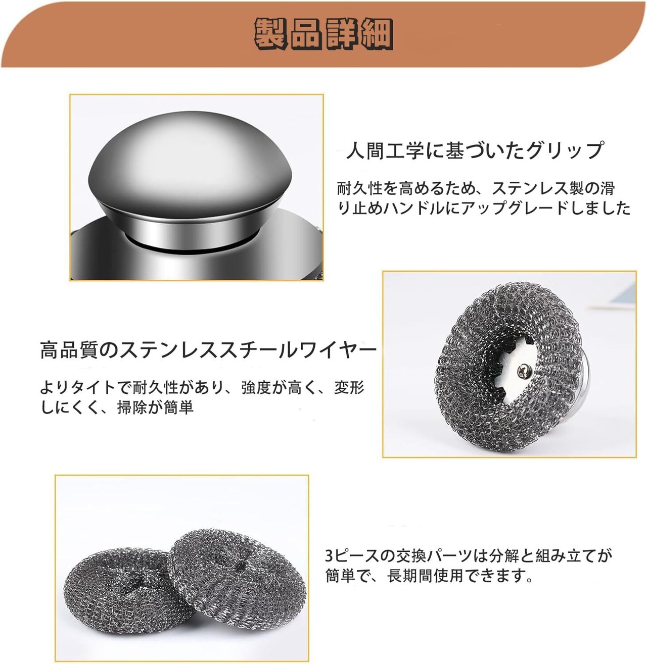 ステンレスたわし 金たわし 持ち手 本体+替え4個 キッチン カナダワシ スチールたわし 焦げ取り たわし 金属たわし フライパン シンク掃除