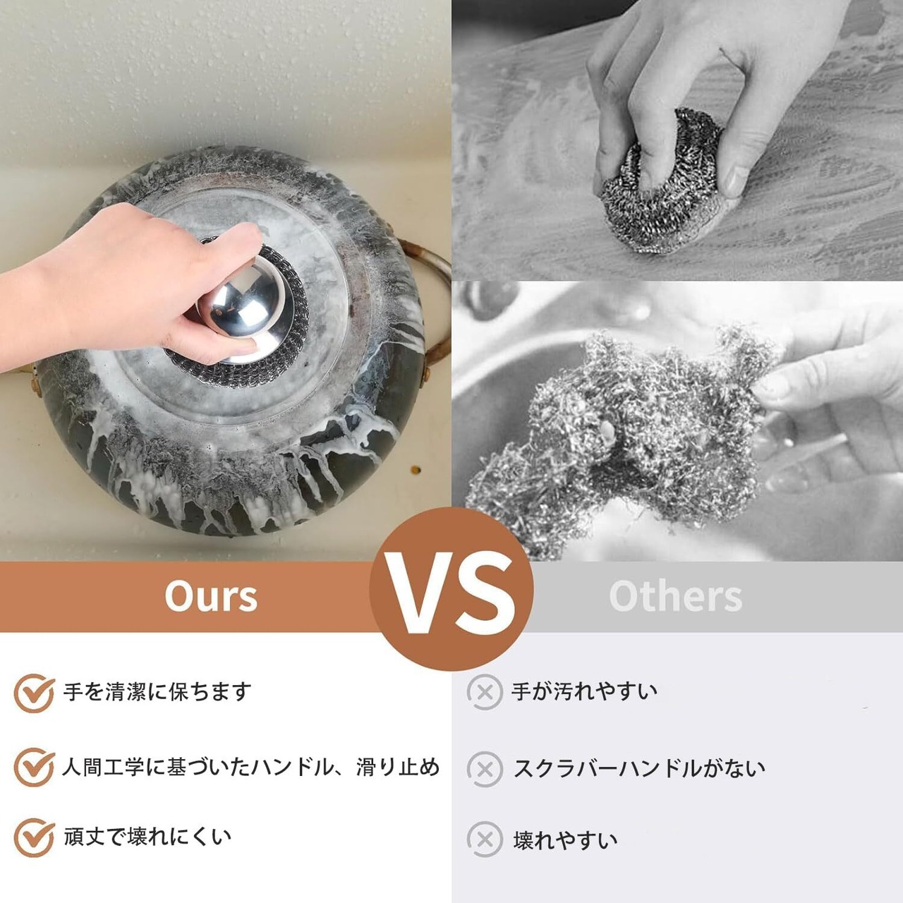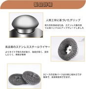 【防錆ステンレスたわし】耐腐食性ステンレス製で、スポンジでは落とせない焦げ跡や頑固な汚れをしっかり除去。耐久性が高く、型崩れしにくいです。
