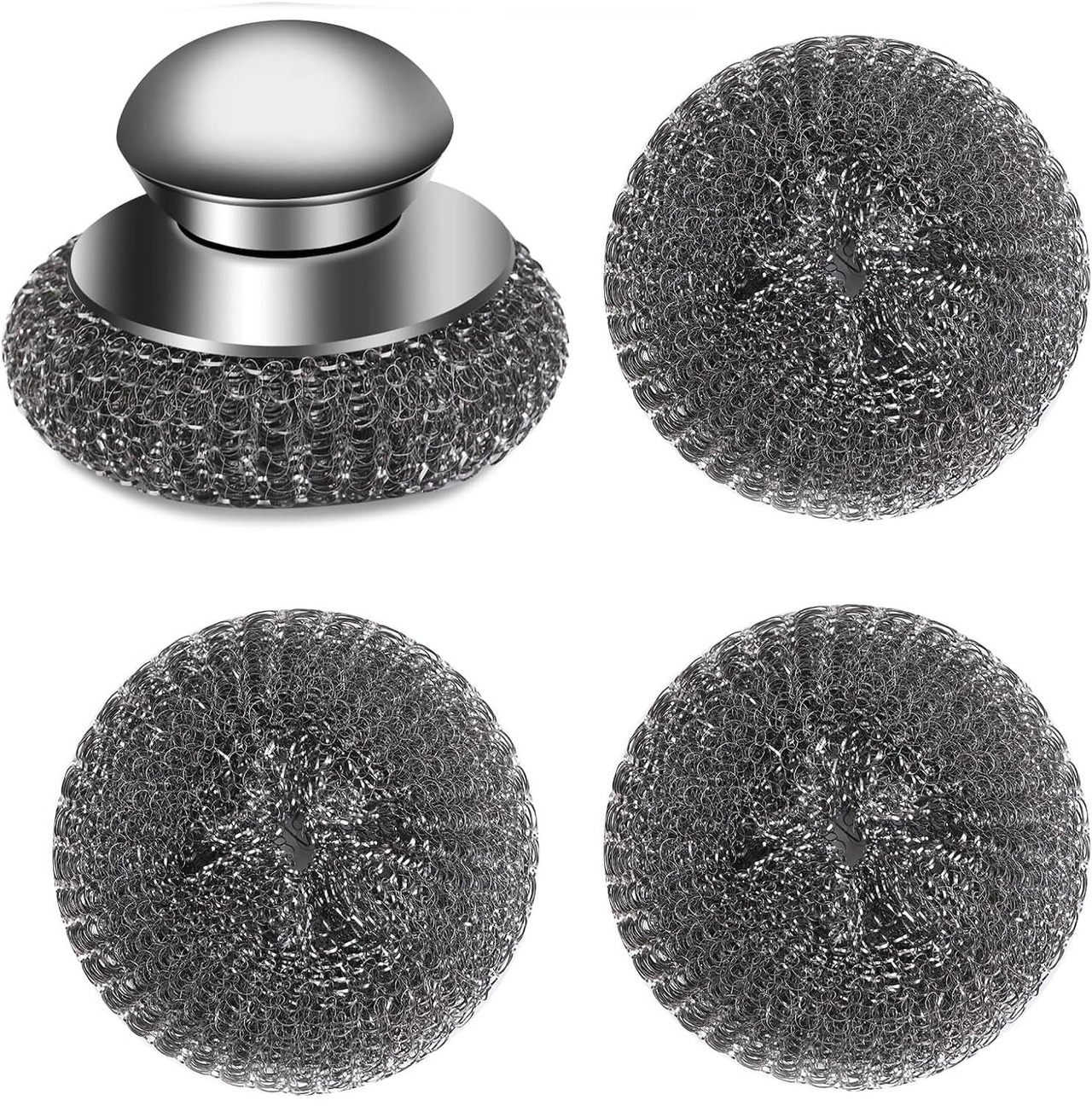 【特別価格】ステンレスたわし 金たわし 持ち手 本体+替え4個 キッチン カナダワシ スチールたわし 焦げ取り たわし 金属たわし フライパン シンク掃除