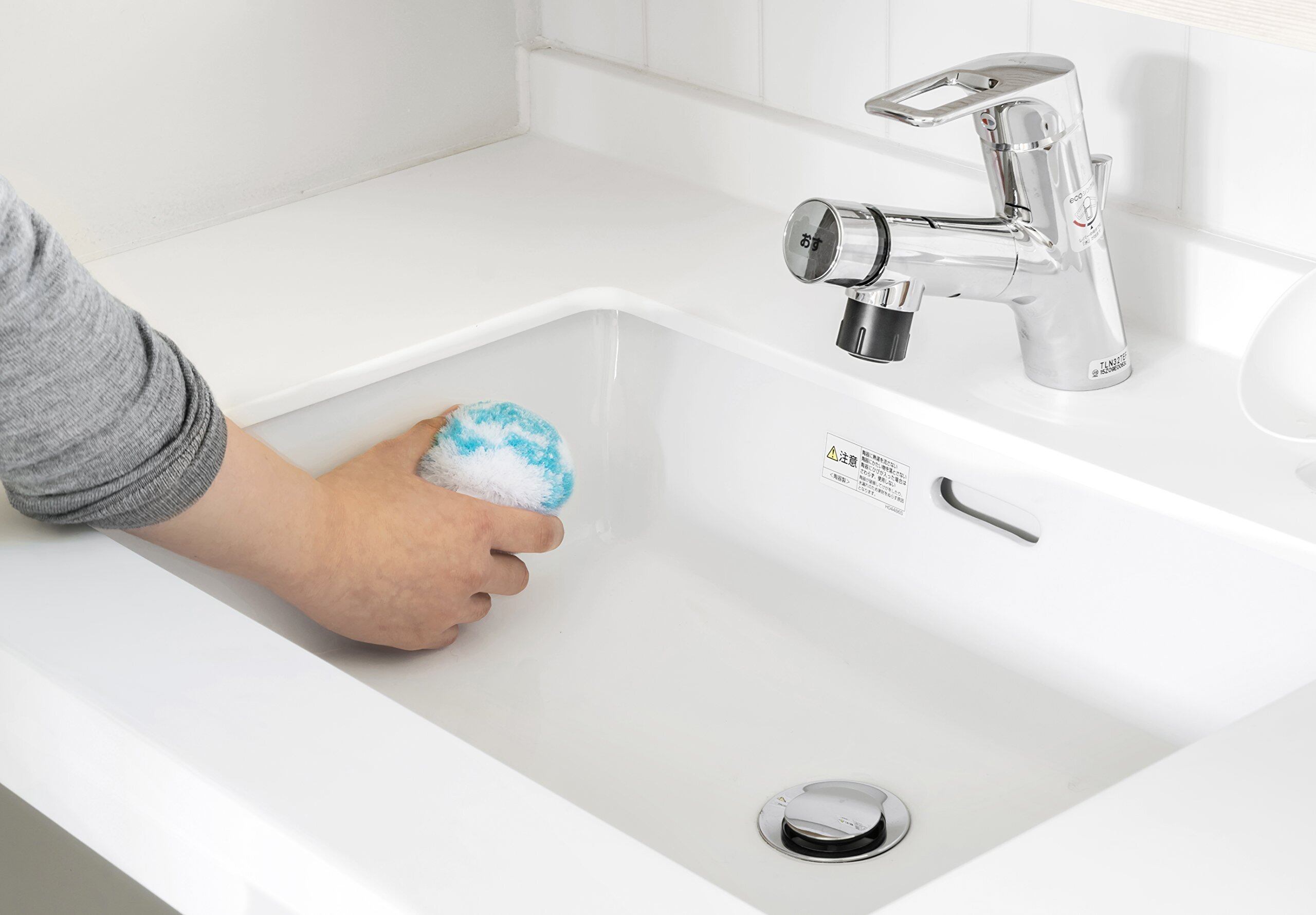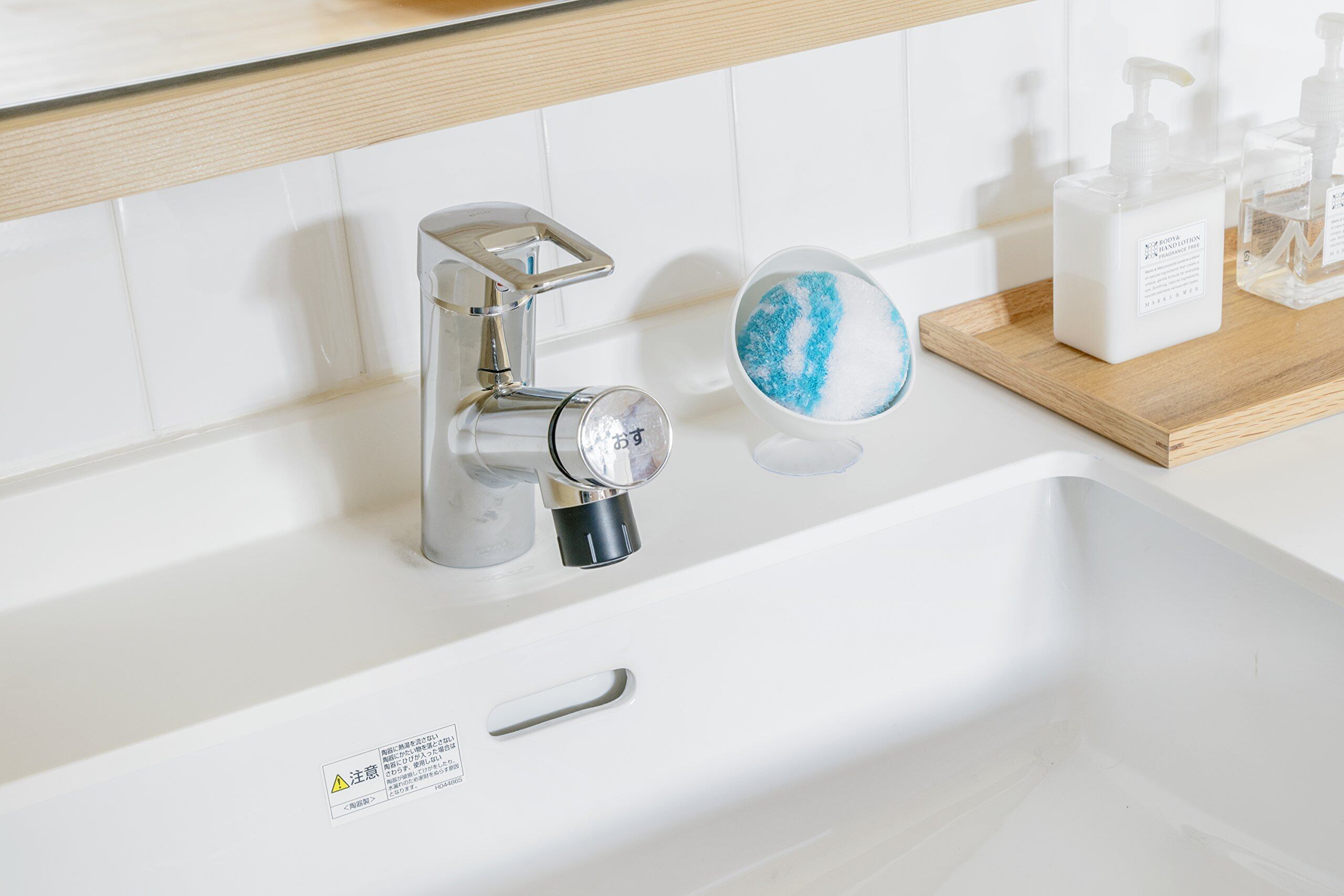 かわいい見た目なのに、洗面台お掃除の強い味方。 お風呂お掃除でお馴染みのバスボンくんシリーズ。 水だけで汚れをしっかり落とすことが出来ます。 かわいい見た目ですが、洗面台お掃除の強い味方です!