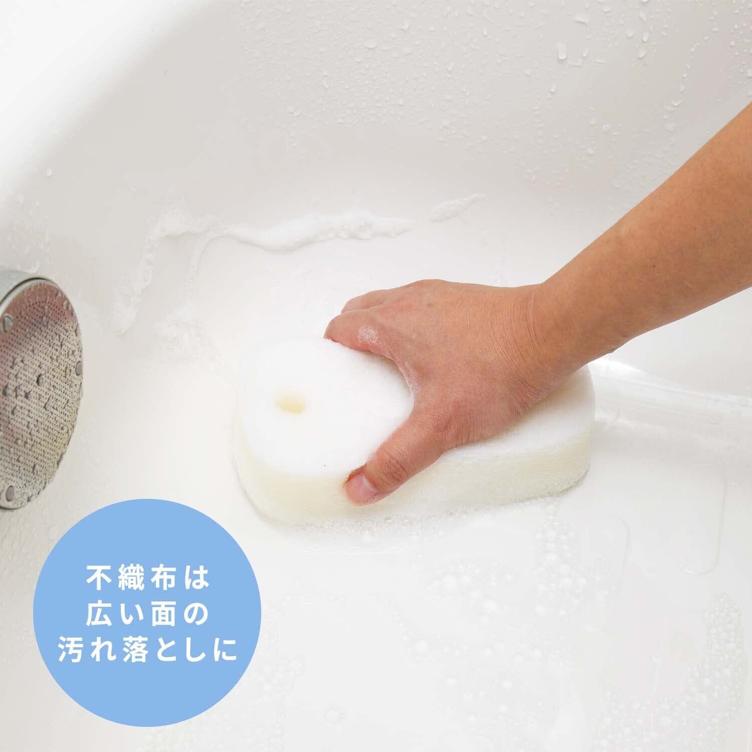 【2層構造】ヌメリや水アカが洗えるスポンジです。汚れ落としと泡立ちの2層構造で不織布は広い面の汚れ落としに。泡立ち良く、へたりにくいスポンジです。