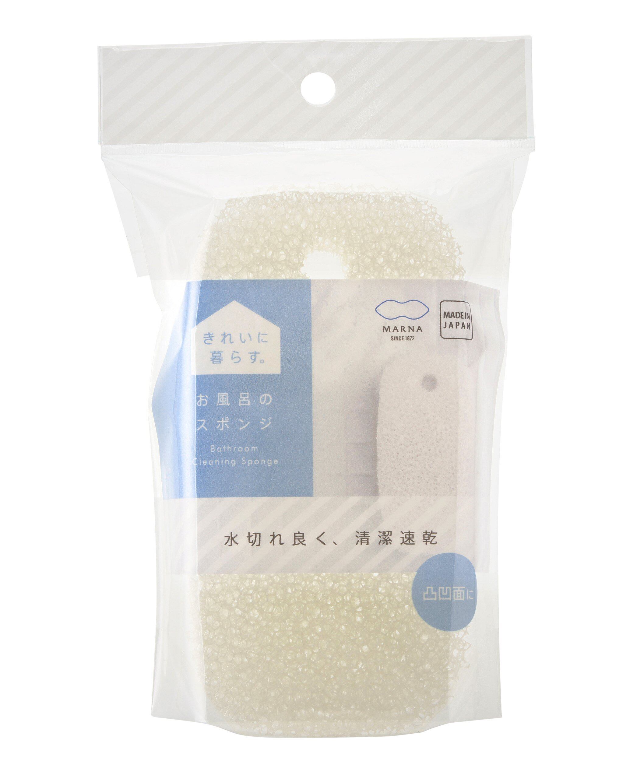 マーナ (marna) お風呂のスポンジ ( ホワイト ) お風呂掃除 バススポンジ (水切れ / 隙間 汚れ落とし) お風呂 スポンジ 壁掛け 収納 W603