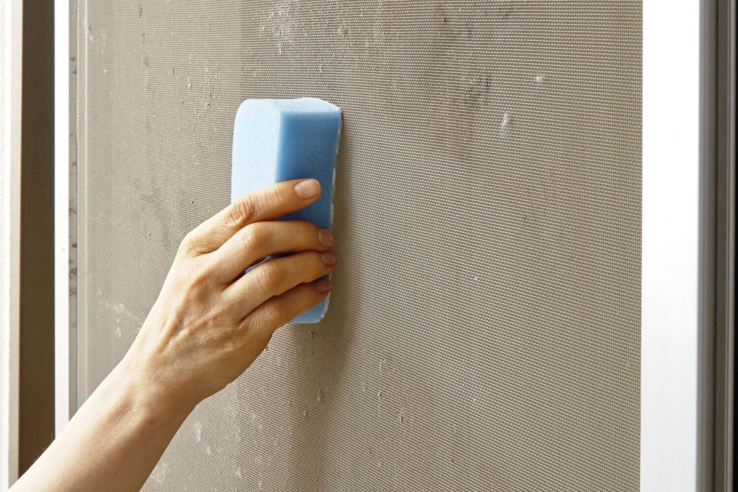 細かいV型カットブラシが網戸の目に入り込み、汚れを落とす
