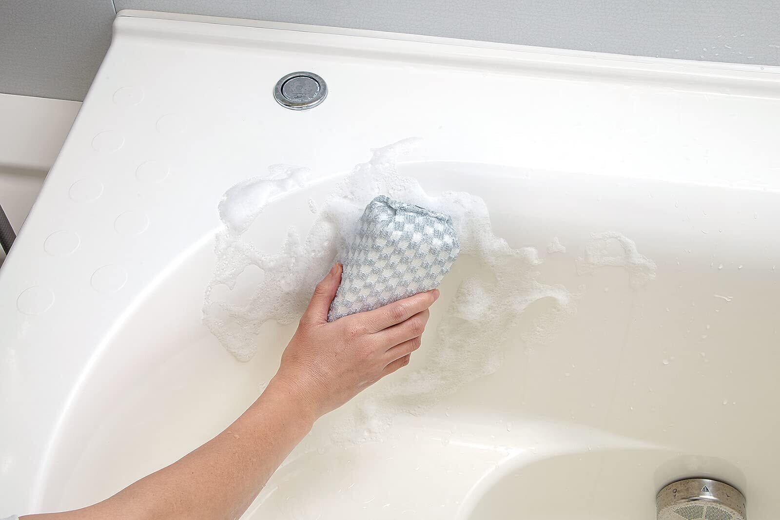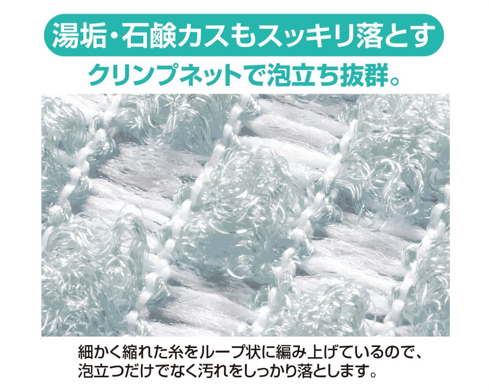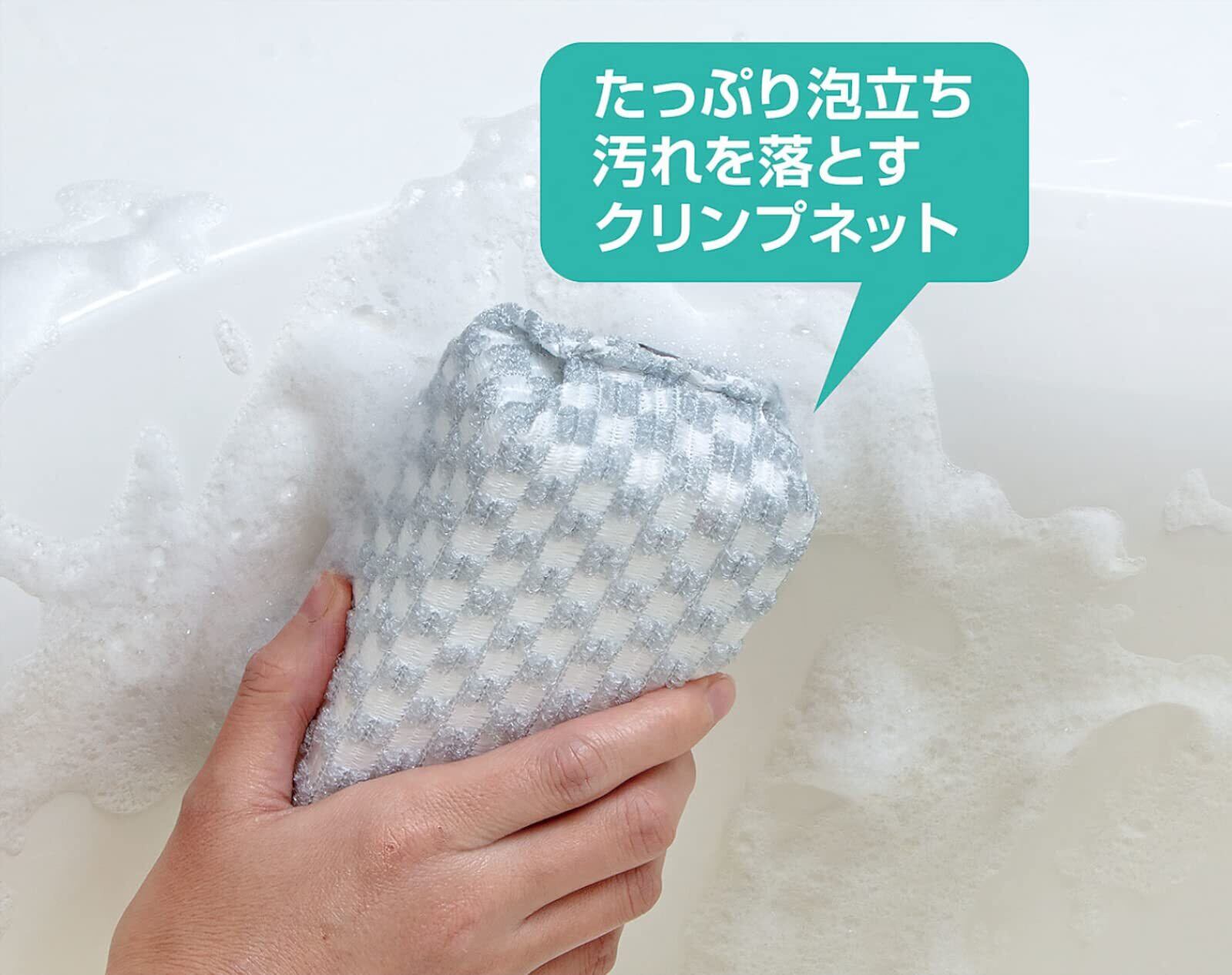 ●クリンプネットで泡立ち抜群。●少量の洗剤でも泡立つクリンプネットを全面に使用。しつこい汚れを落とすキズつけにくいネットクリーナーです。●細かく縮れた糸をループ状に編み上げているので、泡立つだけでなく汚れをしっかり落とします。●ポリ、ホーロー、ステンレス、人工大理石等の浴槽に。●洗面器・風呂イス等の小物に。●浴室の壁や床等の洗いに。●本来の用途以外のご使用はお避けください。●ご使用後はよく洗い、水気を切ってから乾かしてください。●強アルカリ性洗剤や漂白剤のご使用はお避けください。●やわらかいもの、キズのつきやすいものには、あらかじめ目立たないところで試してからお使いください。●あまり強くこすりすぎますとキズをつける場合がありますのでご注意ください。●ザラザラした面での使用や、鋭利な突起物等でネットを傷めることがありますので、ご注意ください。●強くねじるような絞り方はしないでください。●熱湯消毒、電子レンジ、食器乾燥機、自動食器洗い乾燥機での乾燥、消毒はしないでください。●火のそばや高温になる場所には置かないでください。●お子様の手の届かないところに保管してください。●商品を廃棄する場合は、自治体の定める方法により分別(区分)してください。