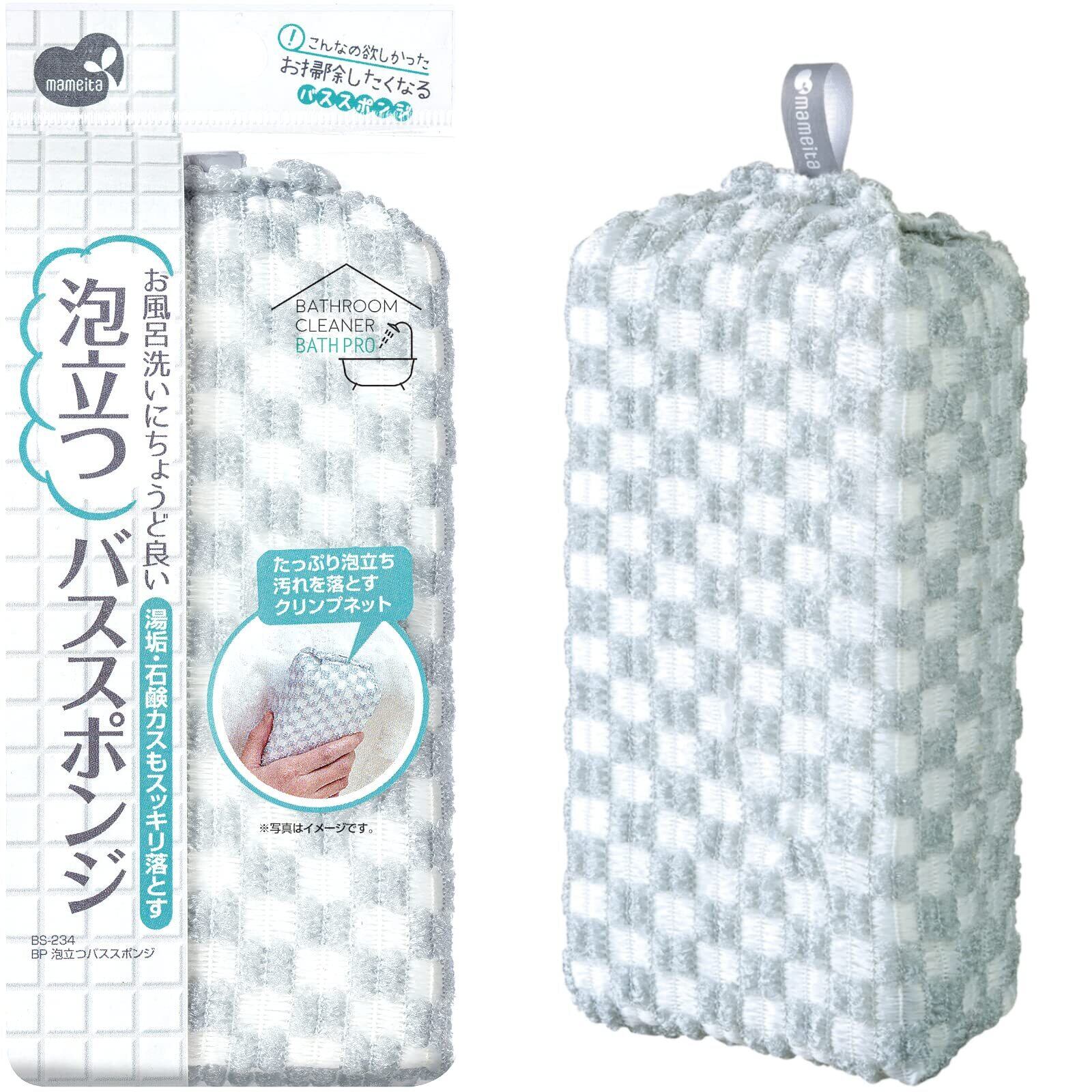 まめいた バススポンジ グレー 幅8cm×奥行5cm×高さ16cm 湯垢 石けん汚れ 落とす 泡立ち ネット キズつけにくい BS-234