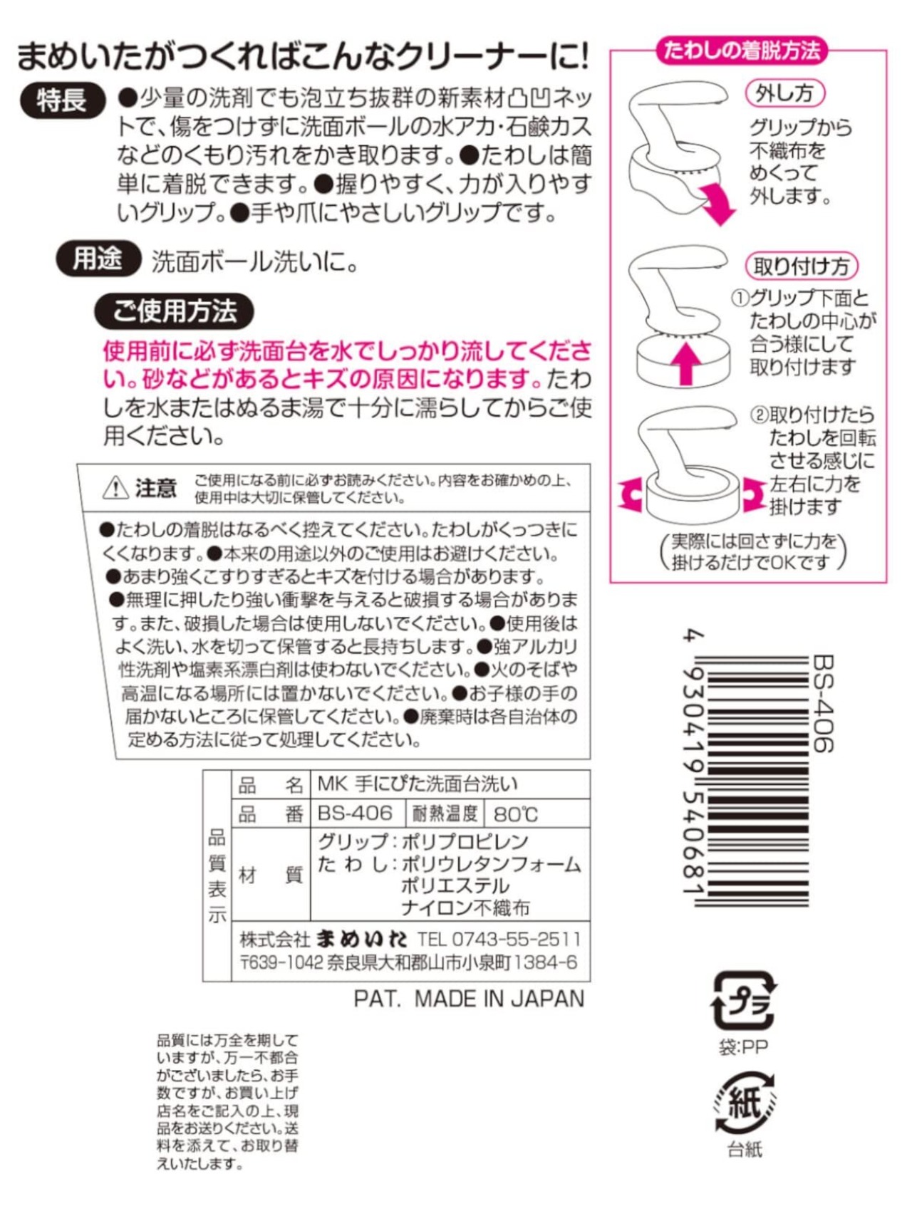 ●少量の洗剤でも泡立ち抜群の新素材凸凹ネットで、傷をつけずに洗面ボールの水アカ・石鹸カスなどのくもり汚れをかき取ります。