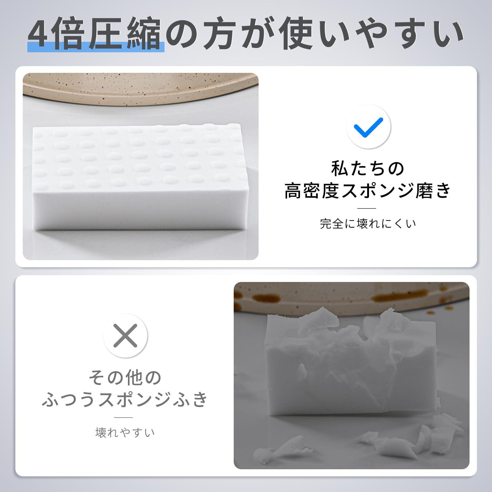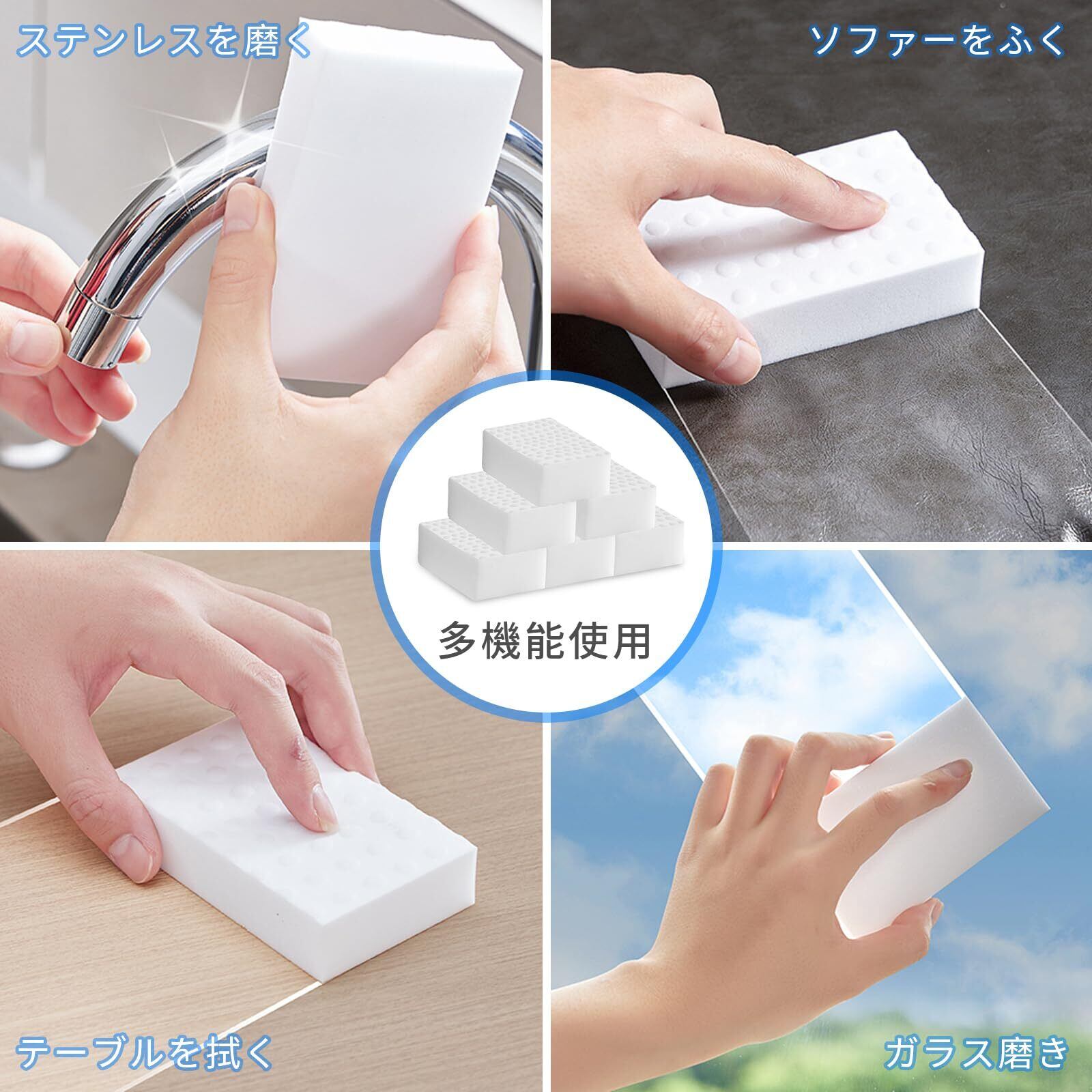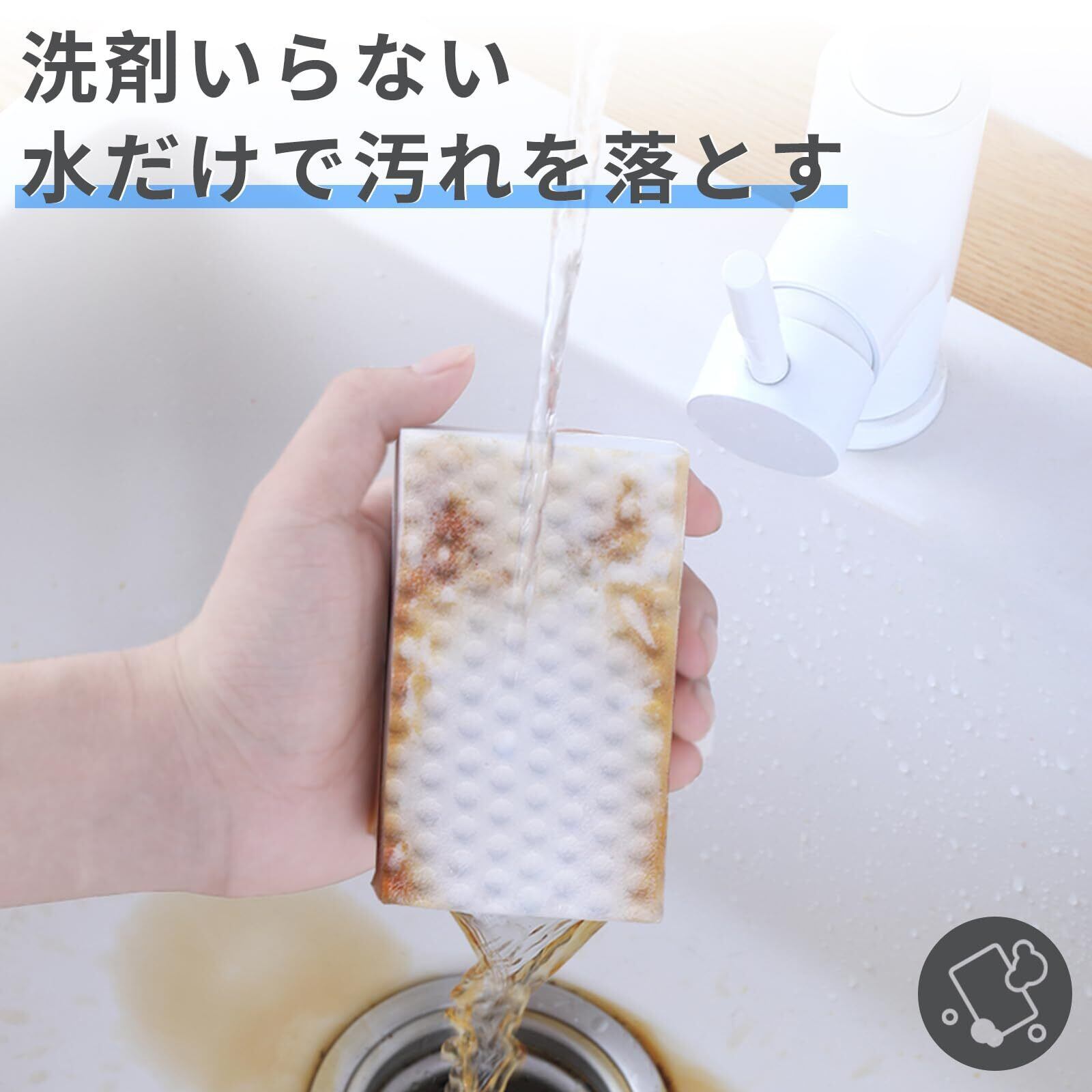 【水だけで簡単に落とせる高密度メラミンスポンジ】 通常のメラミンスポンジよりも4倍の高密度設計で耐久性と長持ち性能が向上。洗剤を使わず水だけで油汚れ・水垢・茶渋・湯垢など頑固な汚れをしっかり除去できます。台所、シンク、コンロ周り、調理台、冷蔵庫の中など、家庭のあらゆる掃除シーンで活躍する多用途クリーナーです。