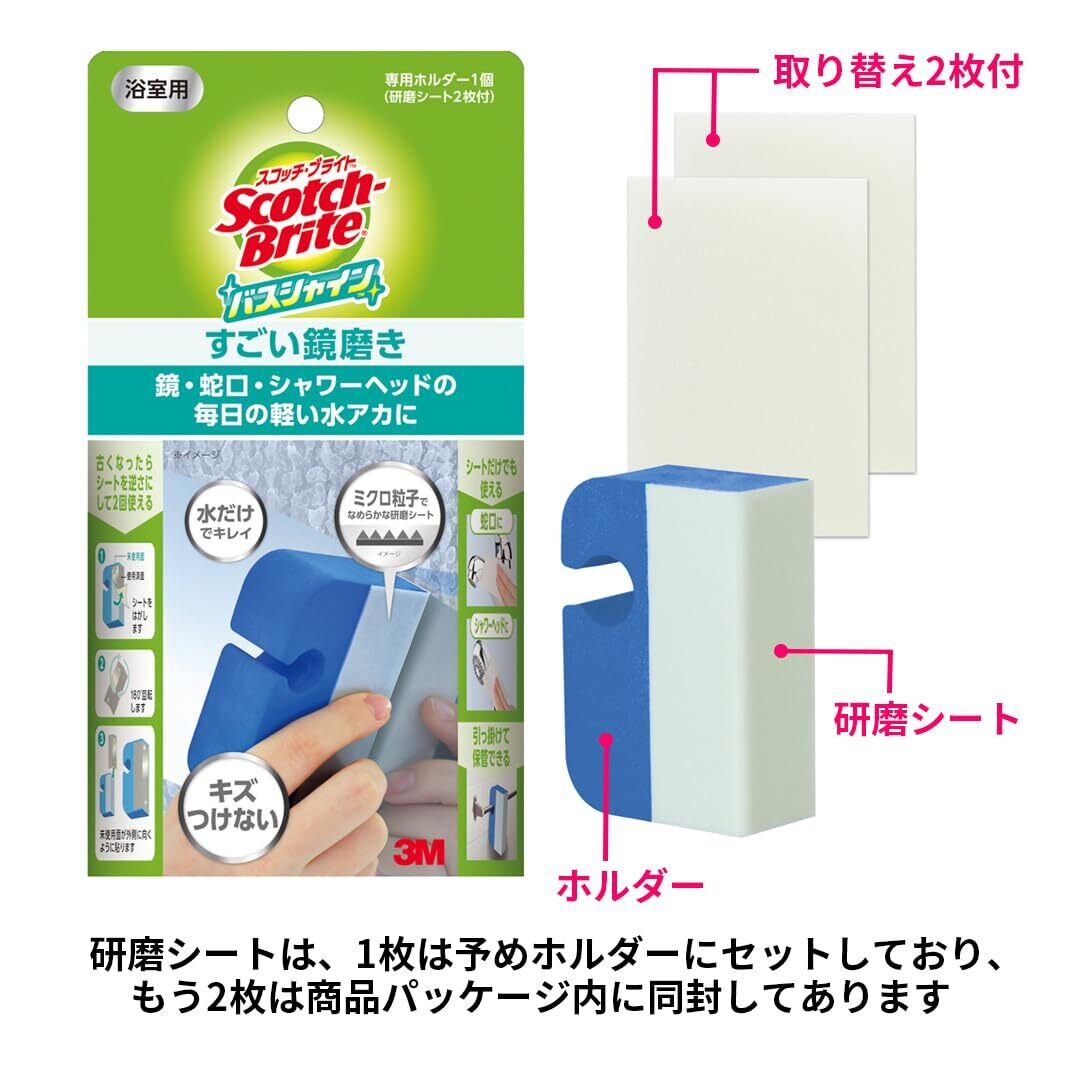 【2025最新】 3M お風呂掃除 うろこ落とし 水垢 すごい鏡磨き 本体 シート3枚 スコッチブライト バスシャイン MC-02+R 2P A