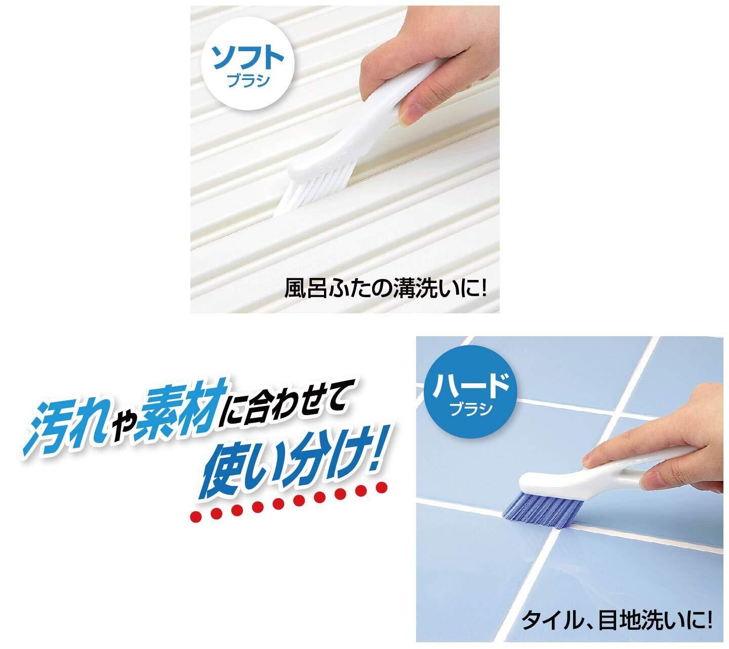 用途:ハードブラシ=浴室のタイル、目地洗いに。 ソフトブラシ=フロフタの溝洗いなどに。
