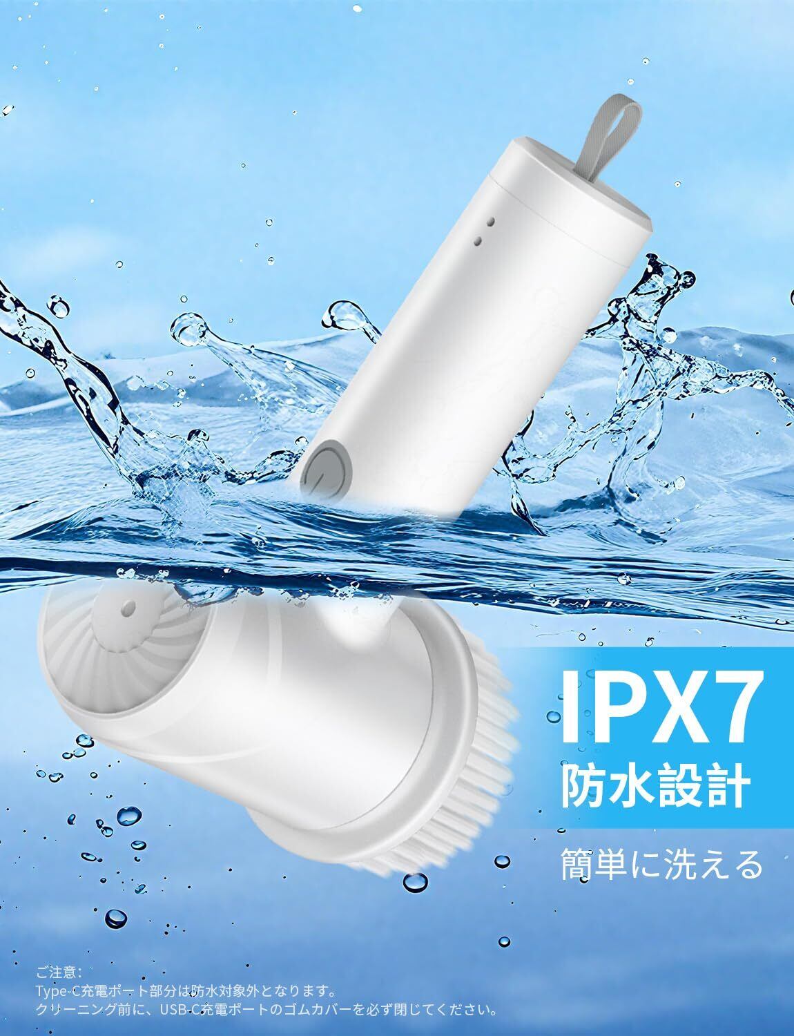 【IPX7防水|無線式】水しぶきに強い防水設計で、浴室・トイレの掃除もラクラク。そして、電動お掃除ブラシはコードレスの設計で、電線に邪魔せず、どこでも自由に掃除できます。(ご注意:充電ポートは非防水のため、水没厳禁。)