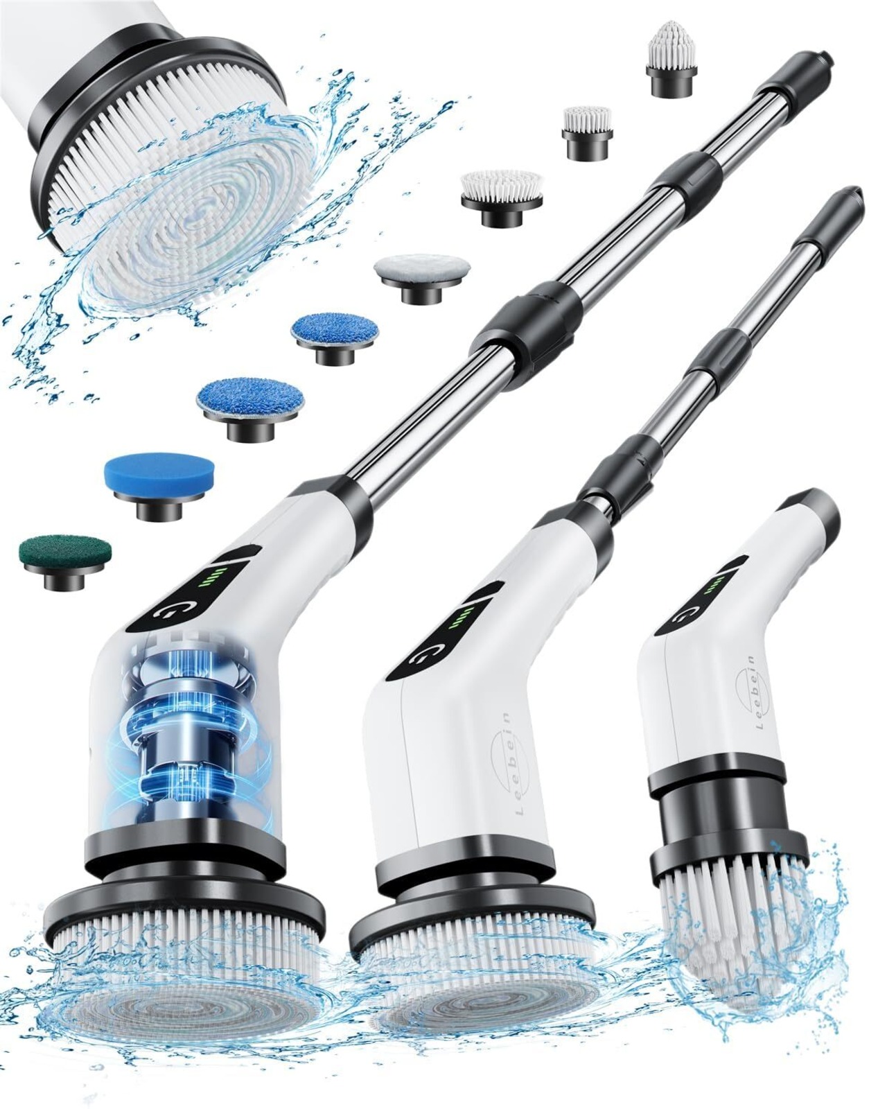 Leebein バスポリッシャー 電動お掃除ブラシ 8つ取り替えブラシ付き お風呂掃除 ターボプロ ブラシ USB C充電式 長さ伸縮可能 手持ち式 5000mAh大容量 90分間連続使用 風呂 浴室 浴槽磨き トイレ掃除 床 窓 壁 玄関 年末掃除 PSE認証済み 日本語説明書付属