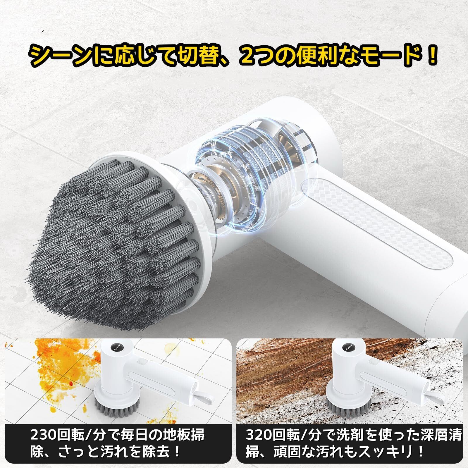 【2段階の回転速度で高性能清掃】このパワースクラバーは、日常清掃に最適な230 RPMの低速と、徹底清掃に適した320 RPMの高速の2つの回転速度を備えた高効率モーターを搭載しています。ワンクリックで簡単にモード切替ができ、使いやすさ抜群です。最適な結果を得るために、使用前に洗剤やクリーニングペーストを加えることをお勧めします。