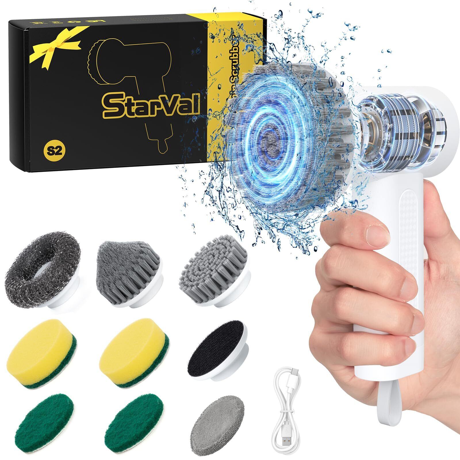 StarVal 電動バスポリッシャー お掃除ブラシ 8種類の取り替えブラシ付き コードレス・USB C充電式 3000mAh大容量で90分間連続使用 手持ち式 浴室・浴槽・トイレ・床・窓・壁・玄関・車の掃除に最適 年末の大掃除にぴったり PSE認証済み 日本語説明書付属