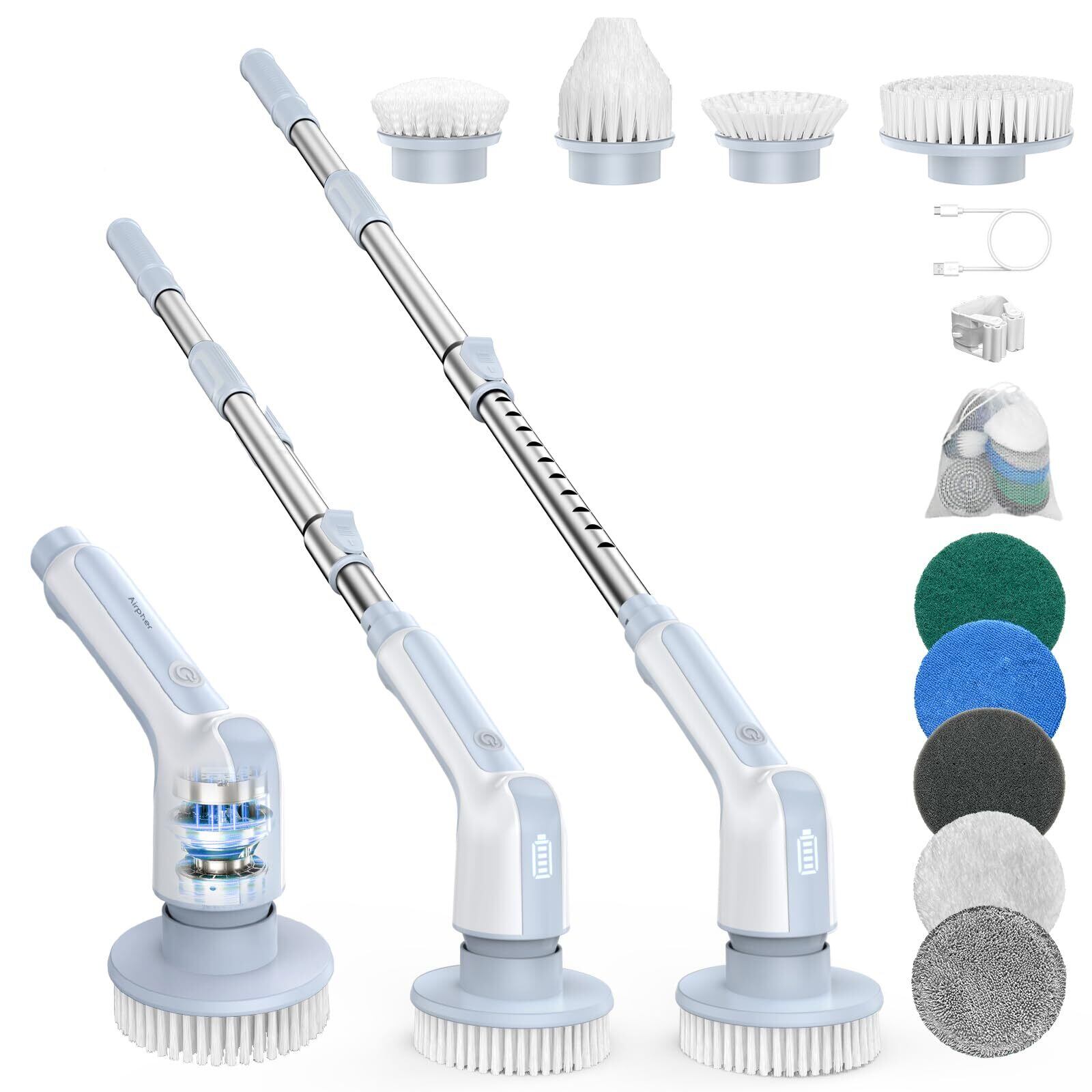 Airpher バスポリッシャー コードレス 電動お風呂掃除ブラシ 120分間連続使用 9つ替えブラシ付き 電量表示【伸縮型パイプ/浴槽/トイレ掃除】