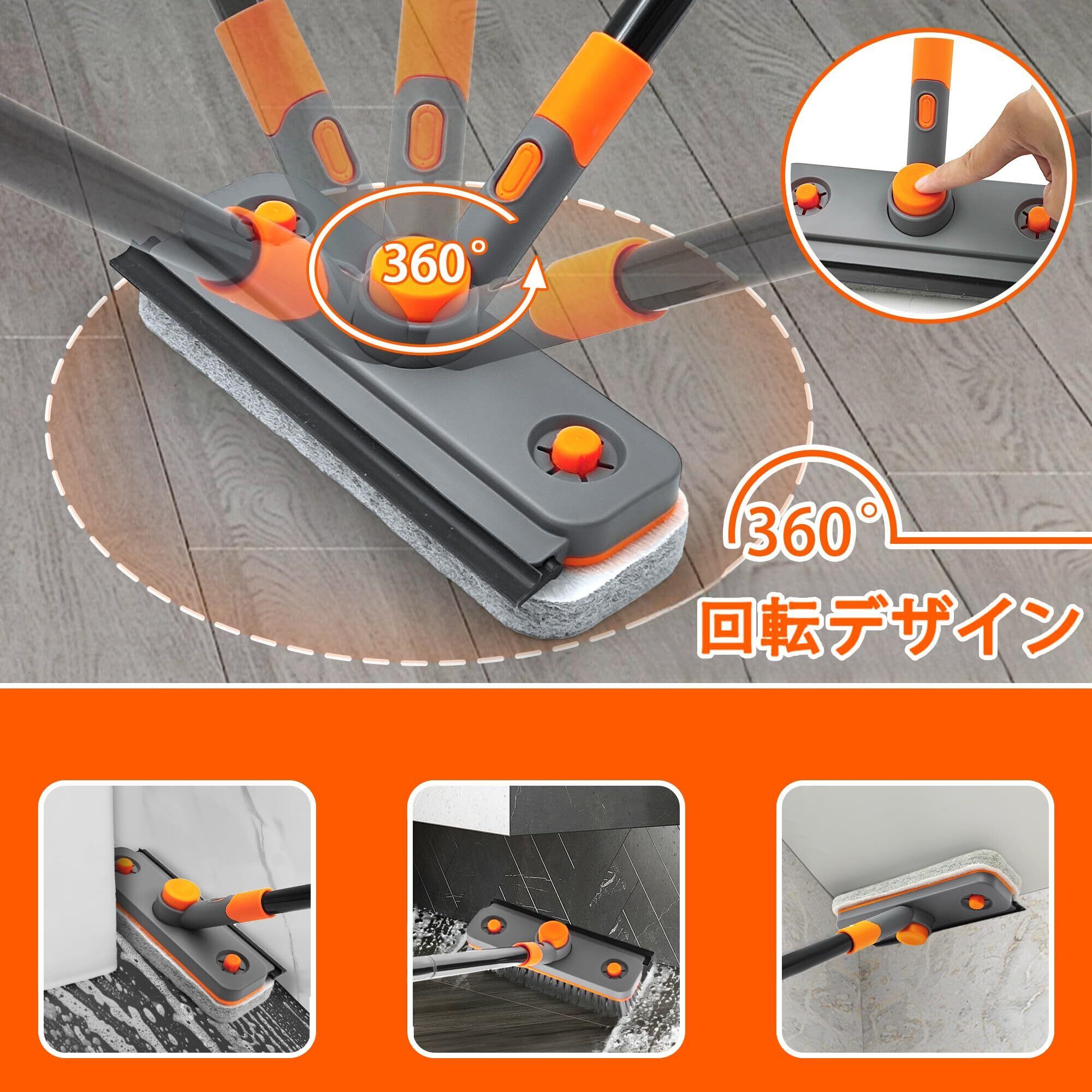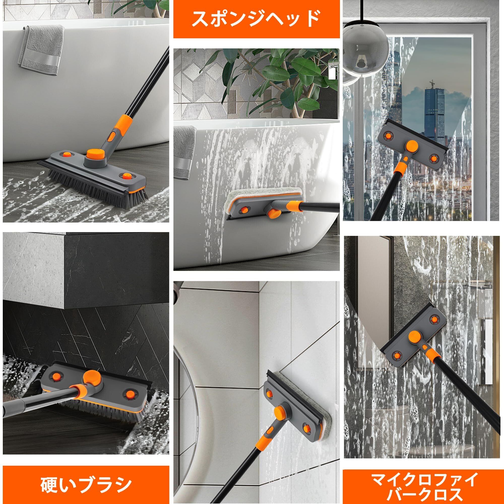 【人気商品】JEHONNお風呂掃除ブラシデッキブラシ長さ調節可能113cm - 136cm, 4 in 1ゴムポンバスブラシ浴室、浴槽、壁、床、水槽、ガラス、テラスの清掃に使用