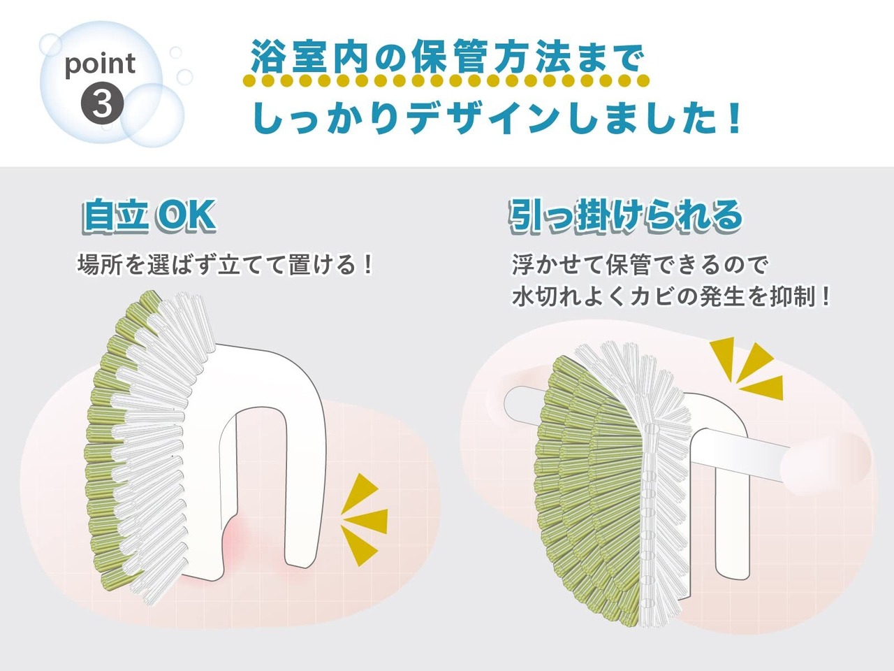 3種類の混合ブラシがデコボコ床黒ずみを落とす