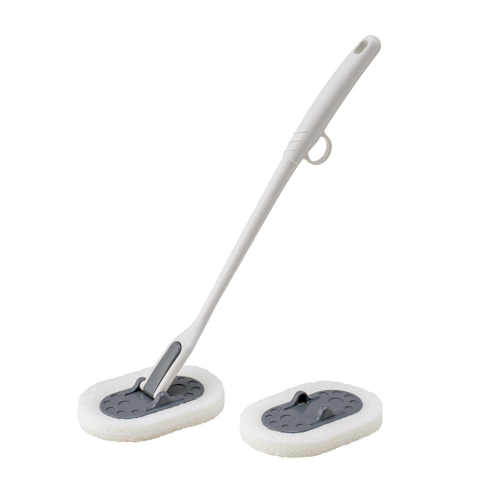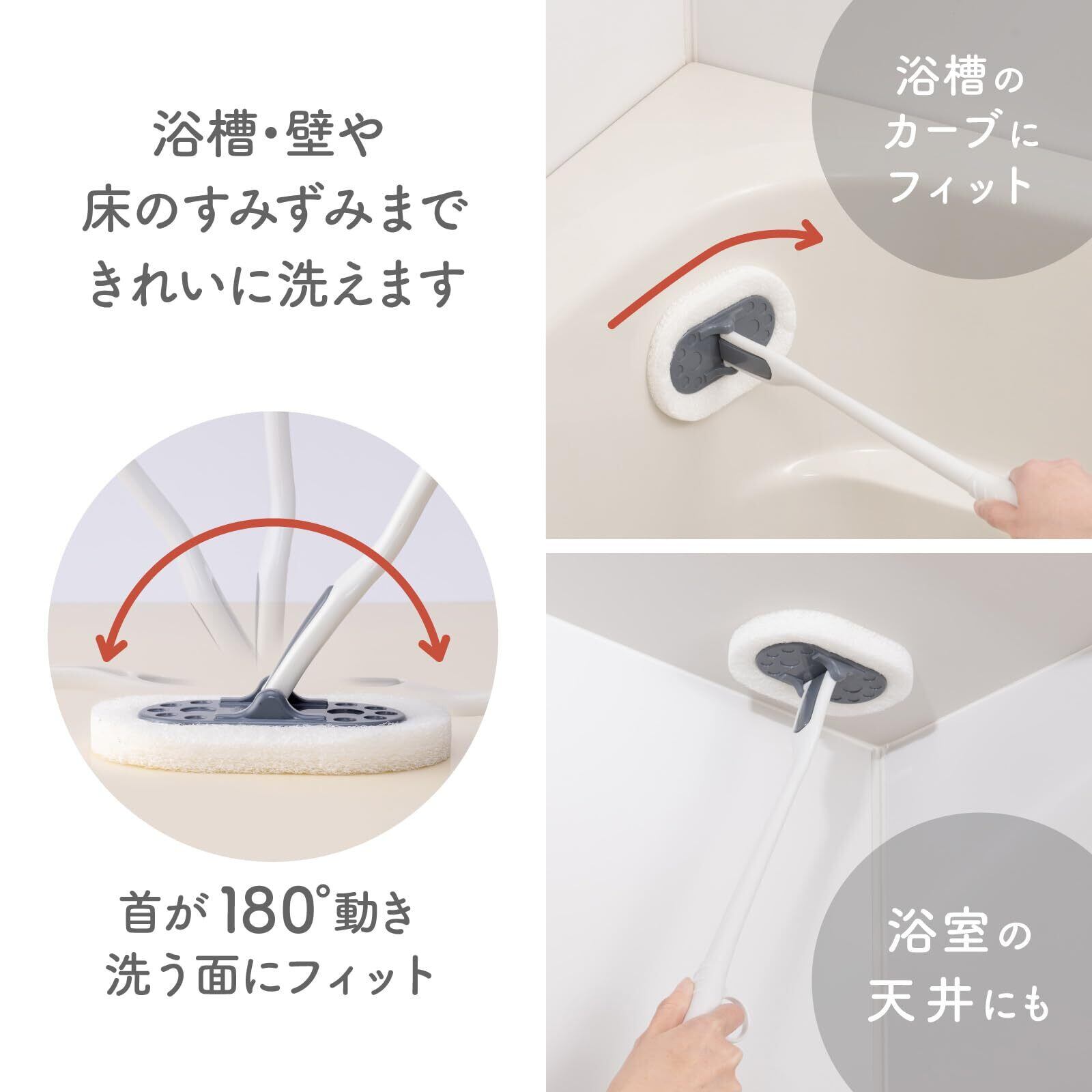 【特別価格】ダイヤ (Daiya) フランドリー Flaundry バスクリーナー 握りやすい浴室掃除ブラシ お風呂 180°動く 楽に洗える指掛け付き 抗菌防カビ 交換できるスポンジ ソフト素材 058152
