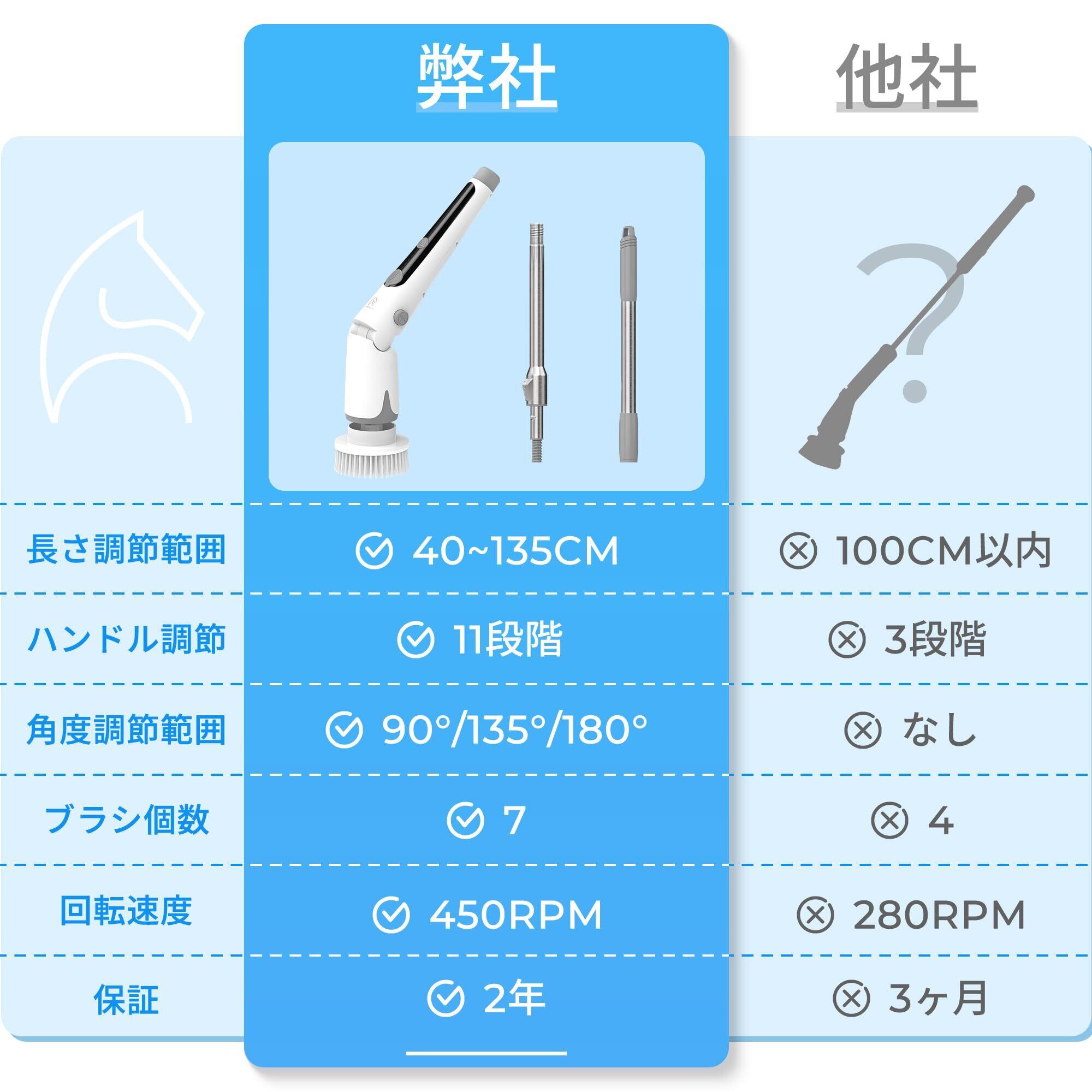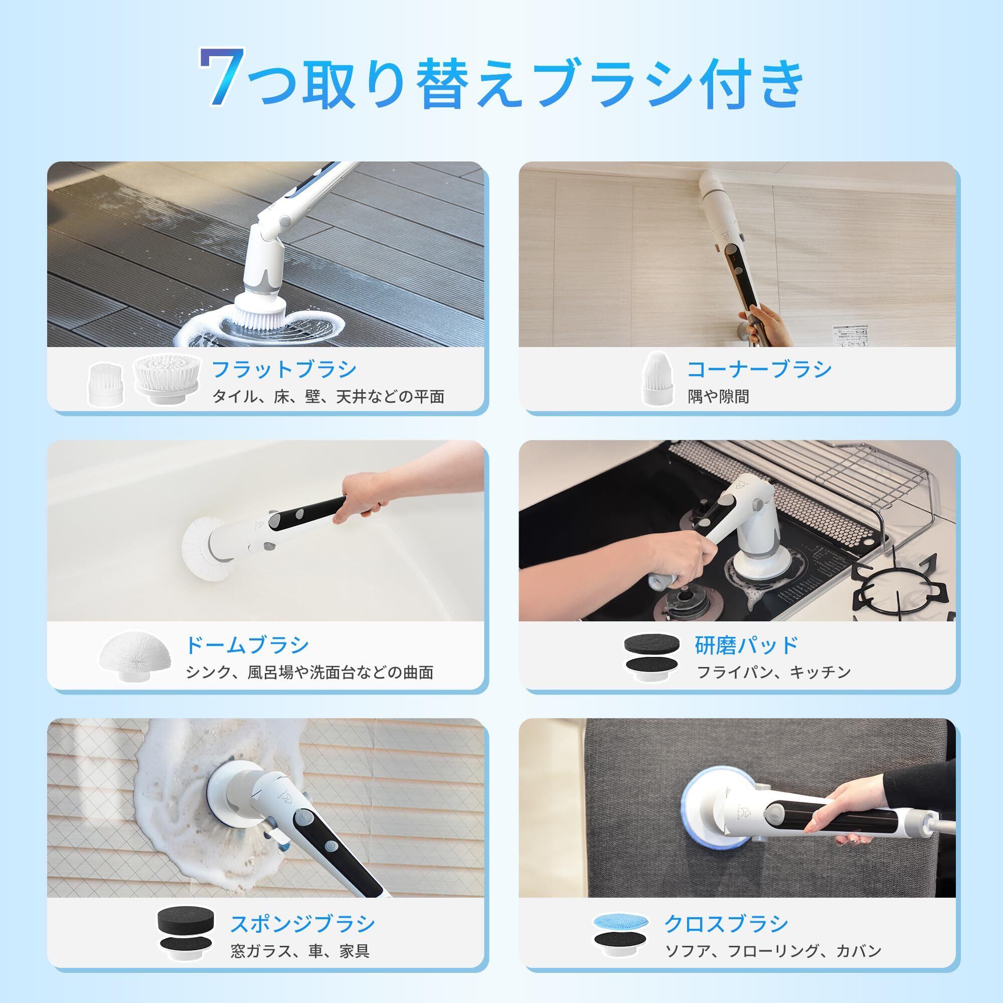 【2025最新】【「家電批評」バスポリッシャー部門 ベストバイ】 エペイオス(Epeios)バスポリッシャー コードレス型 充電式 電動お掃除ブラシ 7つ替えブラシ付き 11段階長さ伸縮可能 2500mAh大容量電池 2つ回転モード ブラシ角度調節 風呂/浴室/浴槽磨き/トイレ掃除/床/窓/壁/玄関/車/年末掃除 日本語説明書付属