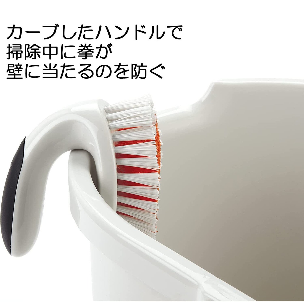 カーブしたハンドルで掃除中に拳が壁に当たるのを防ぐ