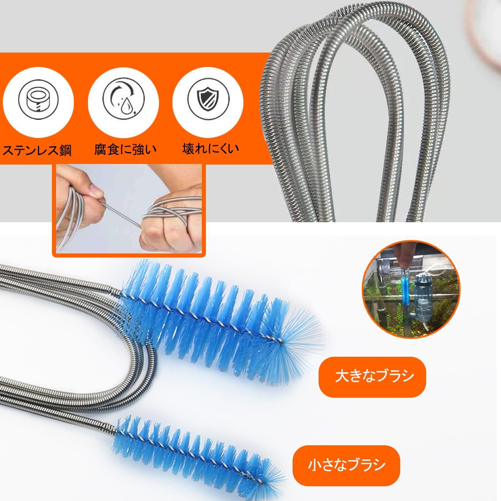 【実用的な双頭パイプクリーニングブラシ】:このクリーニングブラシのシャフトは高品質のステンレス鋼で作られており、耐久性があります。 パイプから頑固な残留物や藻を簡単に取り除きます。 水槽、水族館、給水ポンプ、フィルター、コネクター、パイプ、シャワー排水管、その他のパイプの洗浄に優れています。
