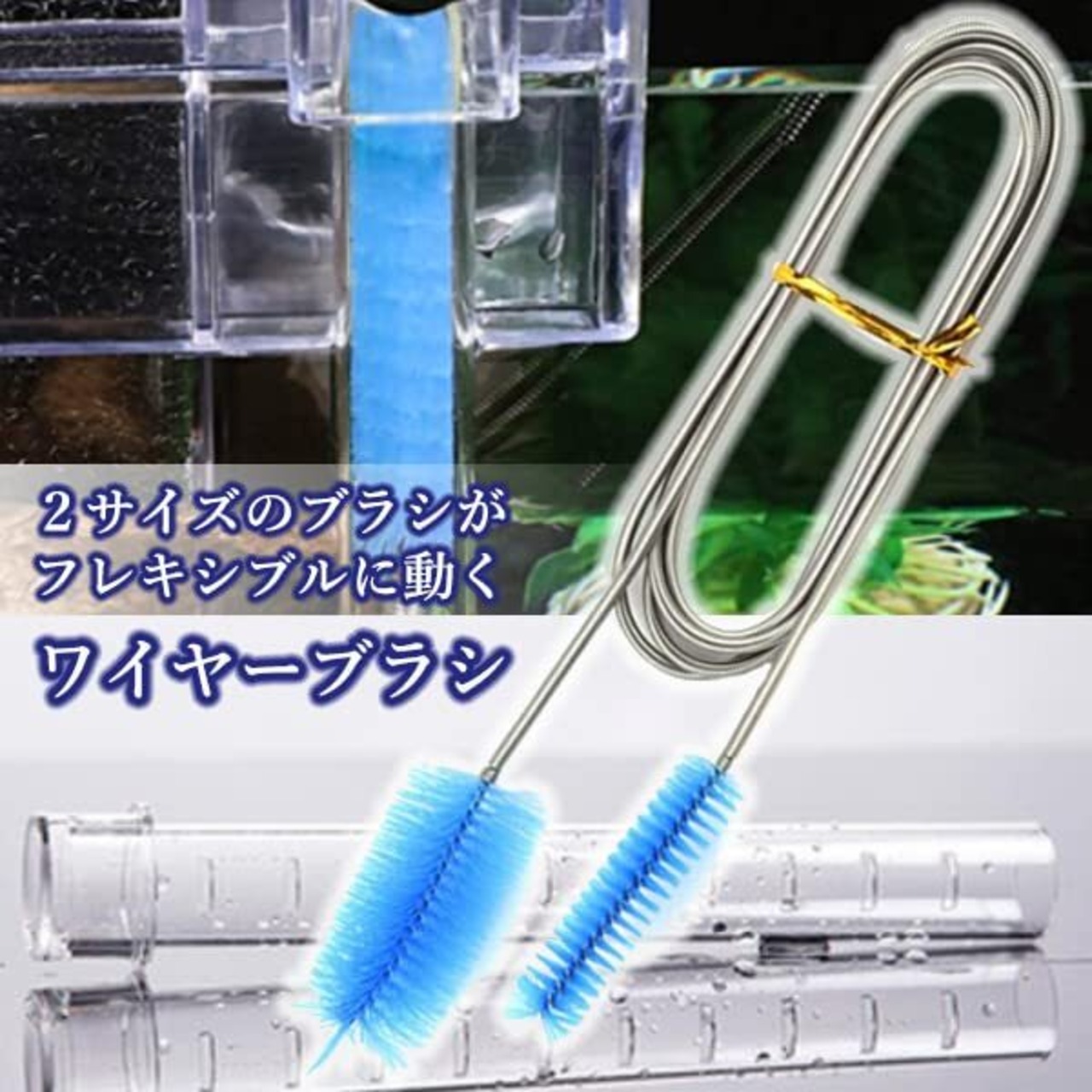 【新着商品】ワイヤーブラシ パイプ 配管 フレキシブル 排水溝 掃除 つまり ステンレス 水槽 クリーナー ブルー